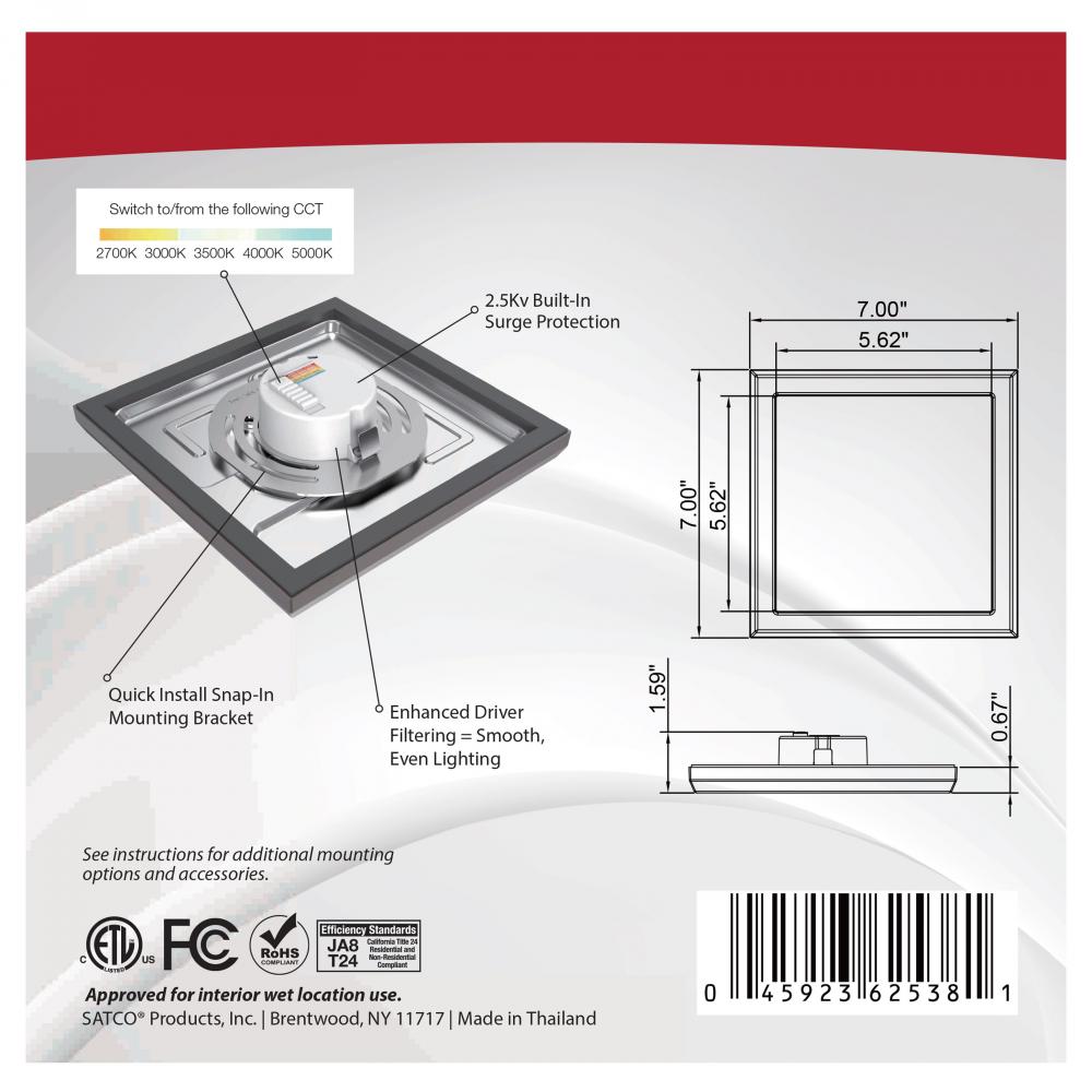 Visit Satco.com for optional accessories: 7 inch square extension collar; White - 25-1714, Black - 25-1715, Bronze - 25-1716