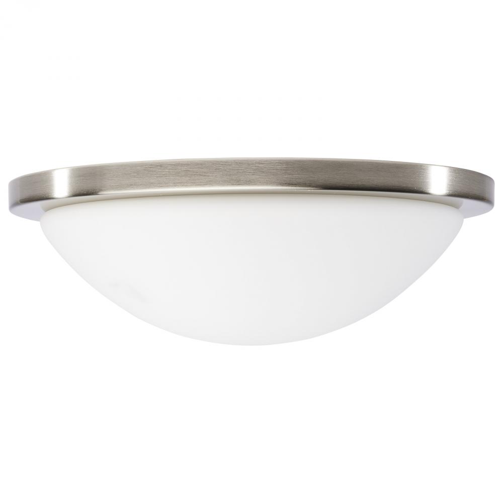 Button; 13 Inch LED Flush Mount Fixture; Brushed Nickel Finish; CCT Selectable; 120 Volts