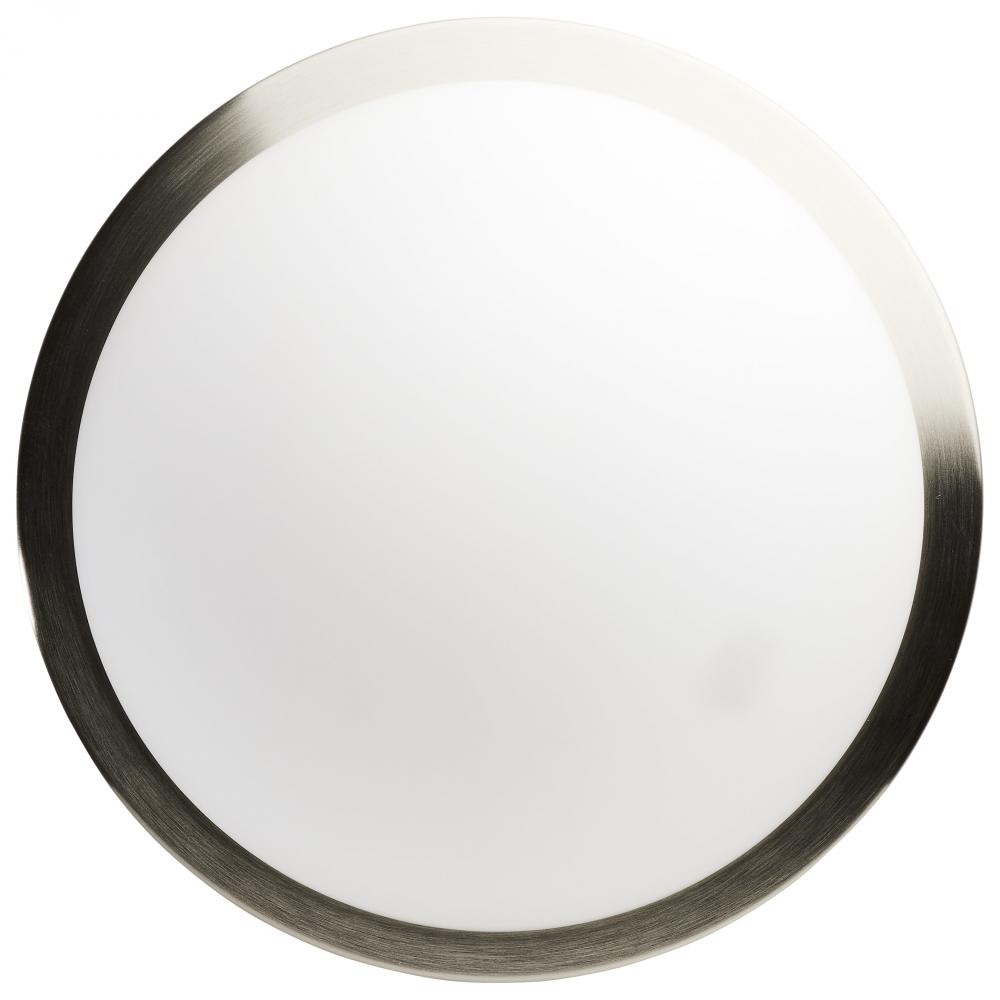 Introducing SATCO NUVO's 62-1843 Button LED Decorative Flush Mount Fixture. This 13 inch fixture comes in a Brushed Nickel finish and offers 3 CCT selectable options for seamless lighting integration. With a high-quality 90 CRI light output, these fixt