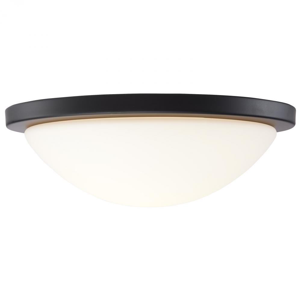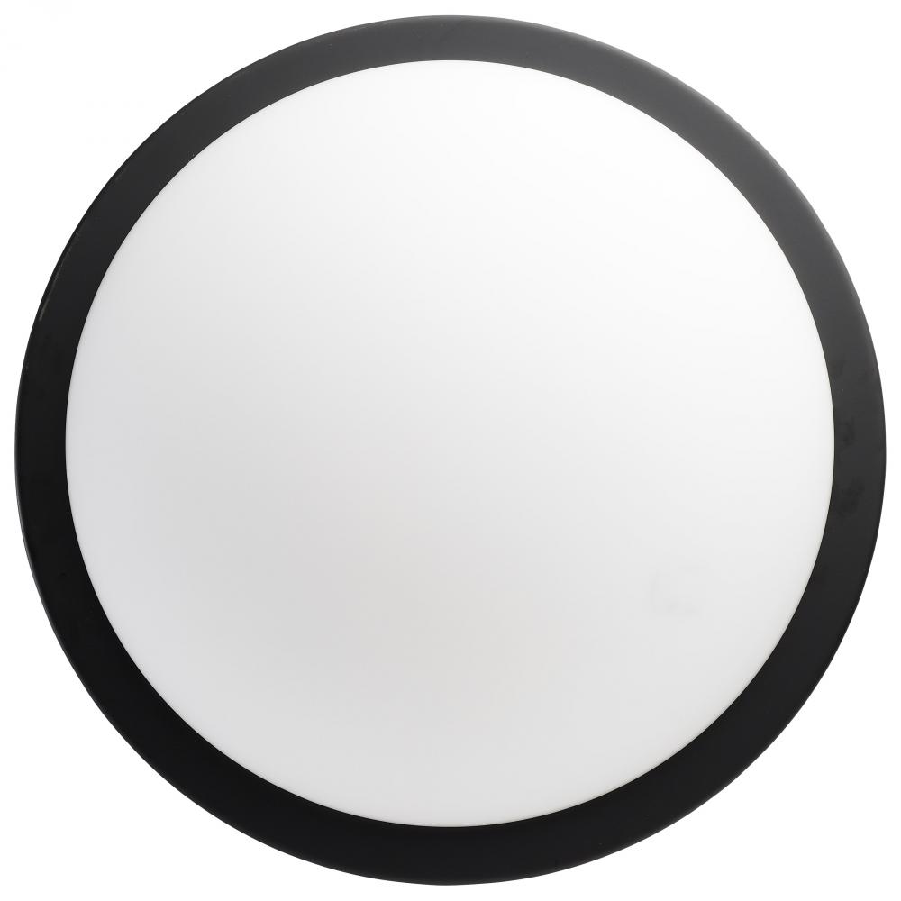 Button; 13 Inch LED Flush Mount Fixture; Matte Black Finish; CCT Selectable; 120 Volts