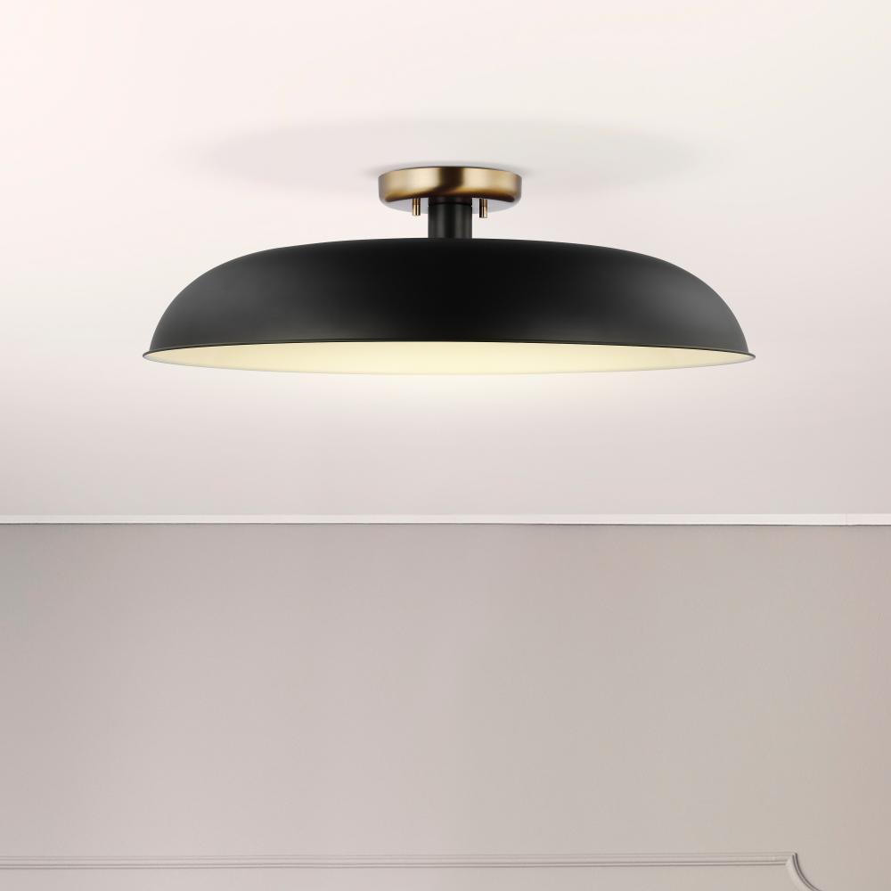 Colony; 1 Light; Large Semi-Flush Mount Fixture; Matte Black with Burnished Brass