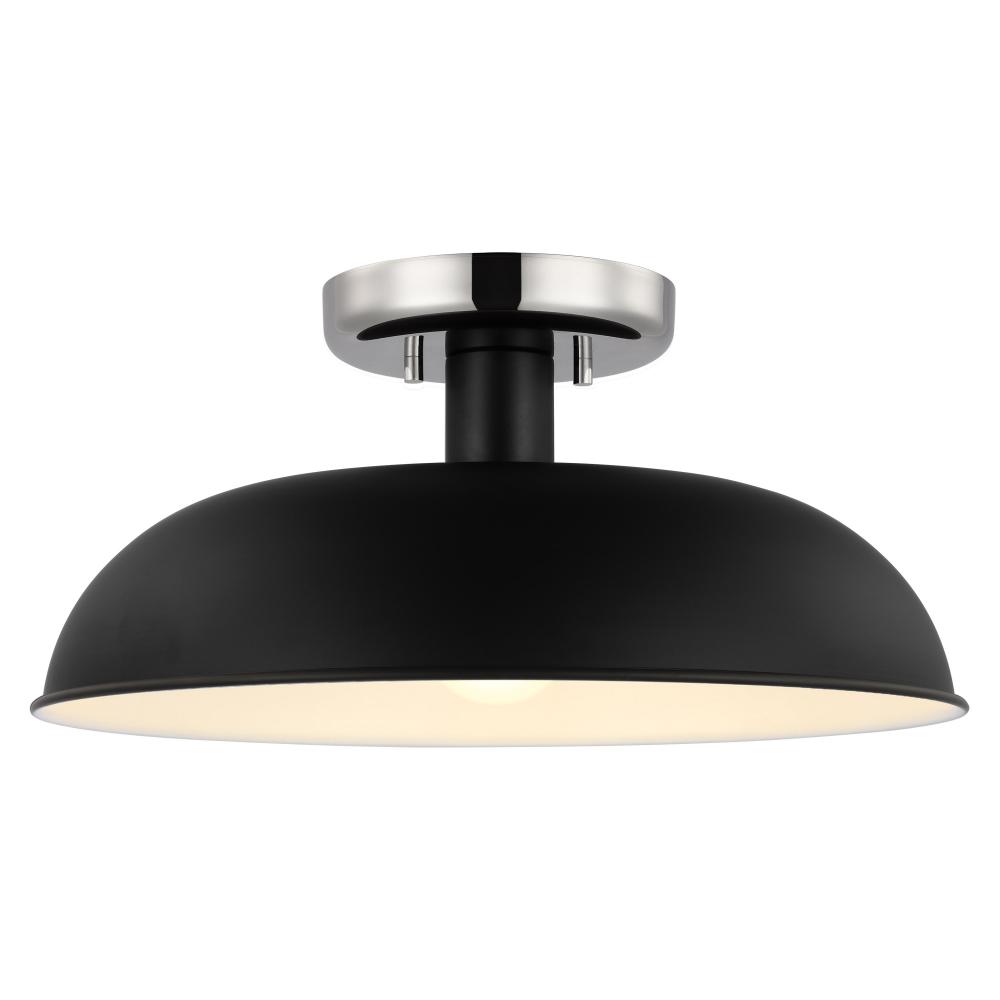 Colony; 1 Light; Small Semi-Flush Mount Fixture; Matte Black with Polished Nickel