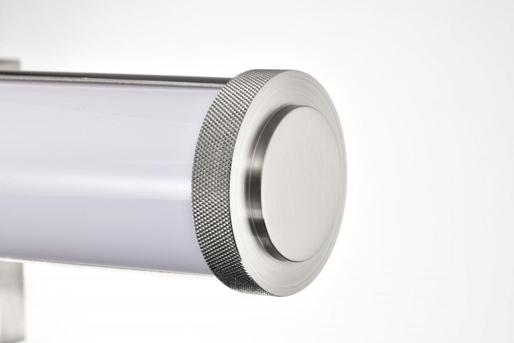 Unveil the beauty of modern design with the Cora 62-2376 LED vanity light, where every detail is crafted to perfection. Featuring elegant, knurled end knobs and a sleek, curved opaque acrylic lens, this LED bath vanity blends sophistication with innovative