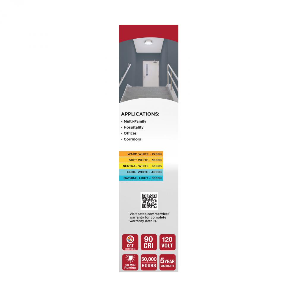 The SATCO NUVO 13-Inch Glamour LED flush mount fixture features a built-in emergency battery backup that provides up to 90 minutes of illumination during power outages-offering critical reliability with an elegant design. An integrated emergency test butto