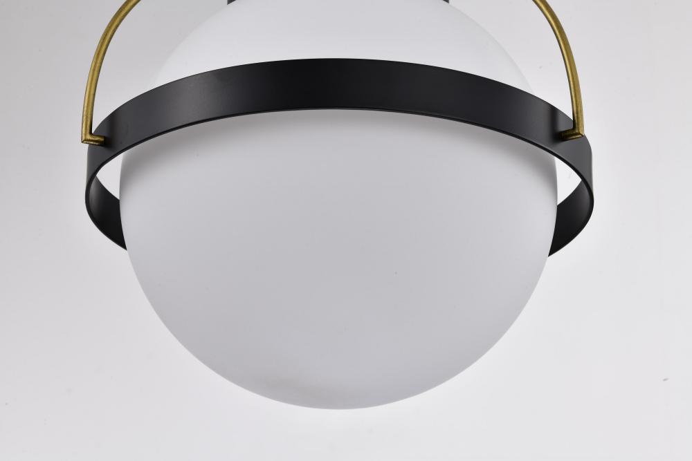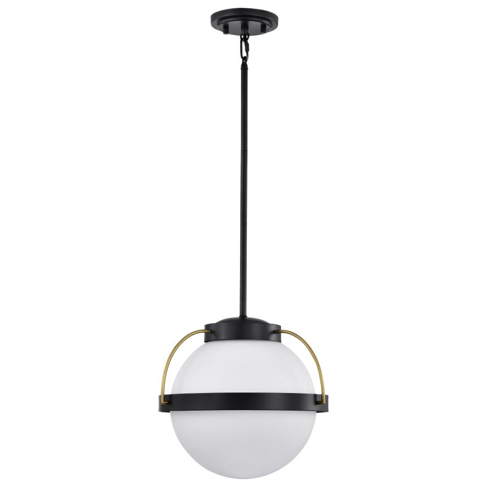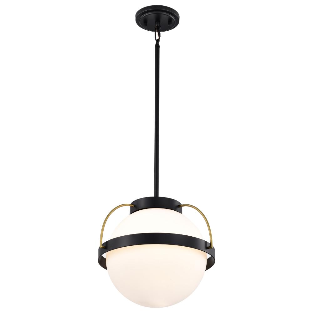 Lakeshore 1 Light Large Pendant; Matte Black & Natural Brass Finish; White Opal Glass