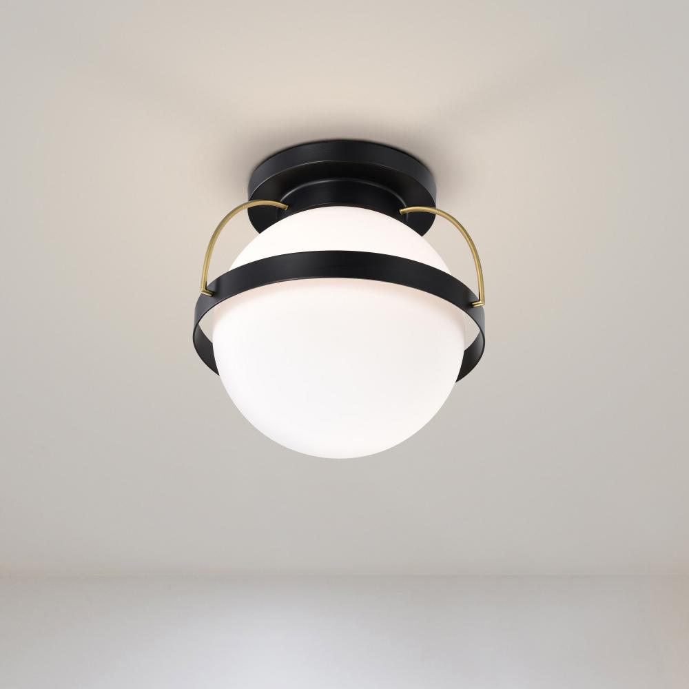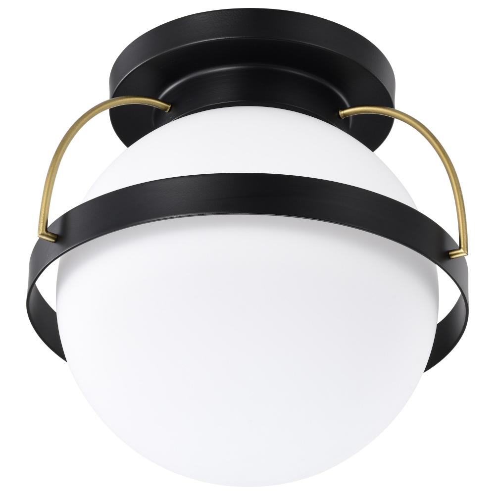Lakeshore 1 Light Medium Flush; Matte Black & Natural Brass Finish; White Opal Glass