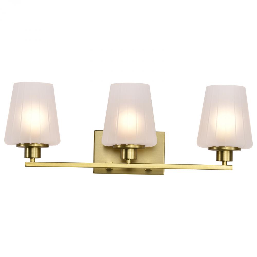 Lune; 3 Light Vanity; Vintage Brass Finish; Etched White Glass
