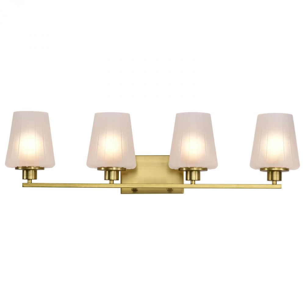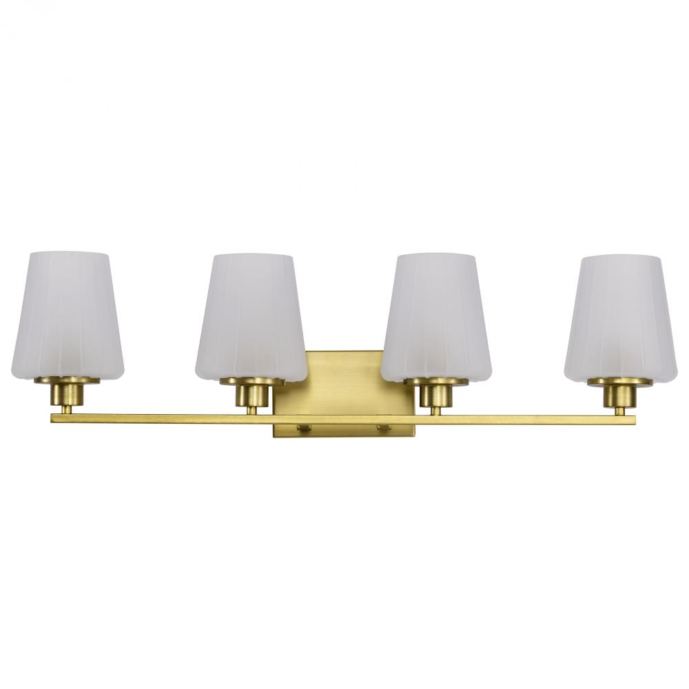 Lune; 4 Light Vanity; Vintage Brass Finish; Etched White Glass