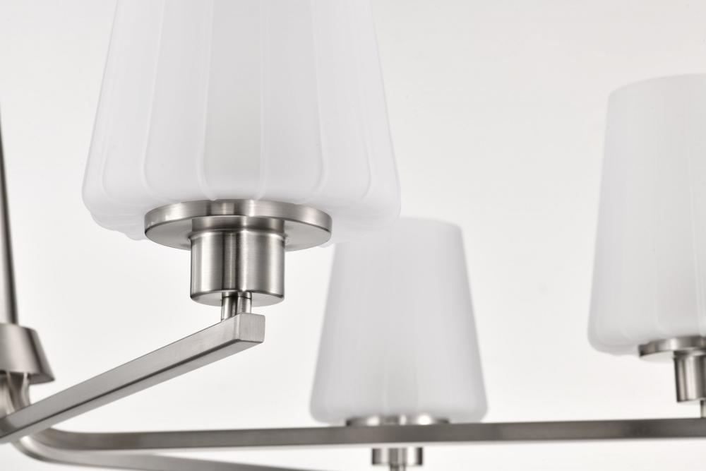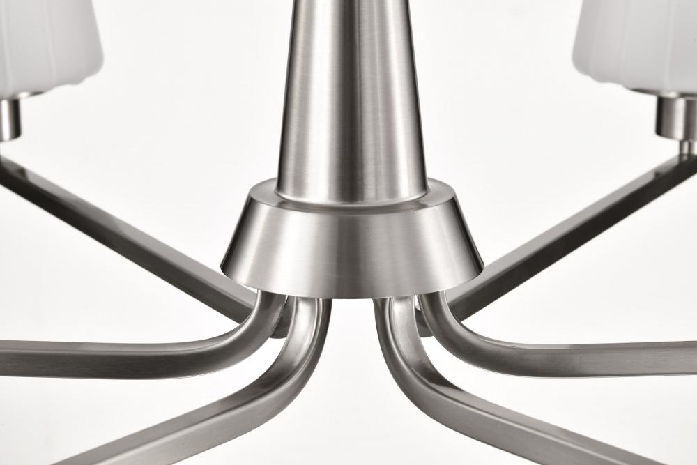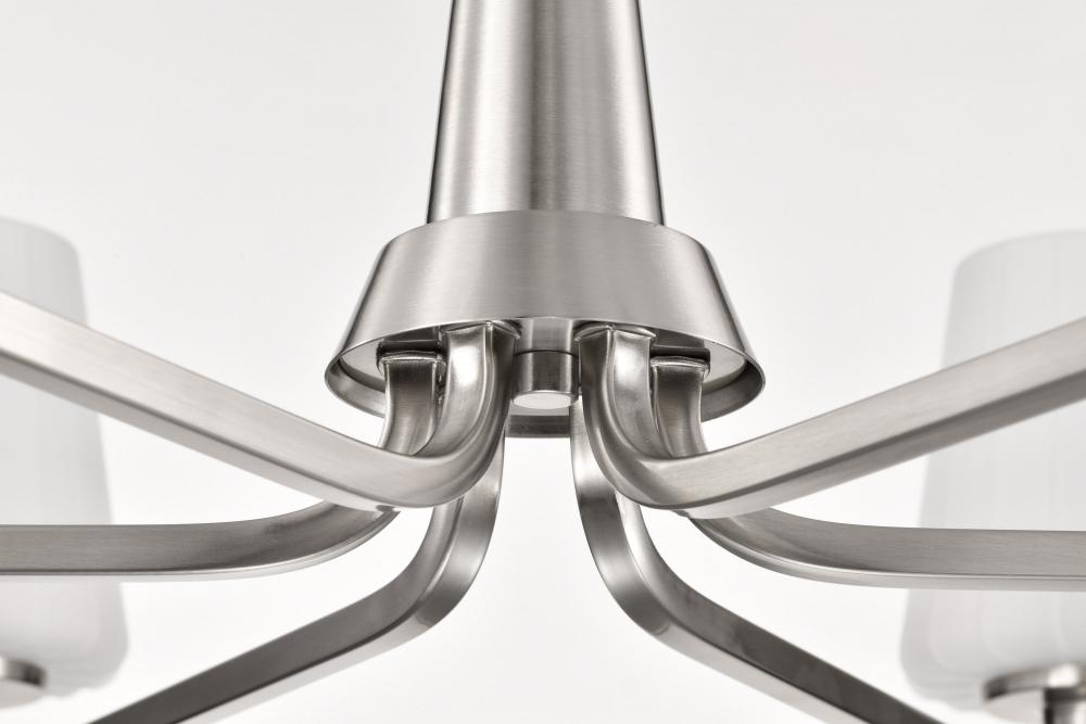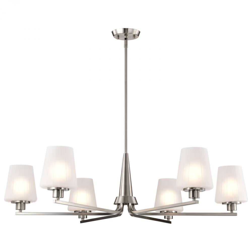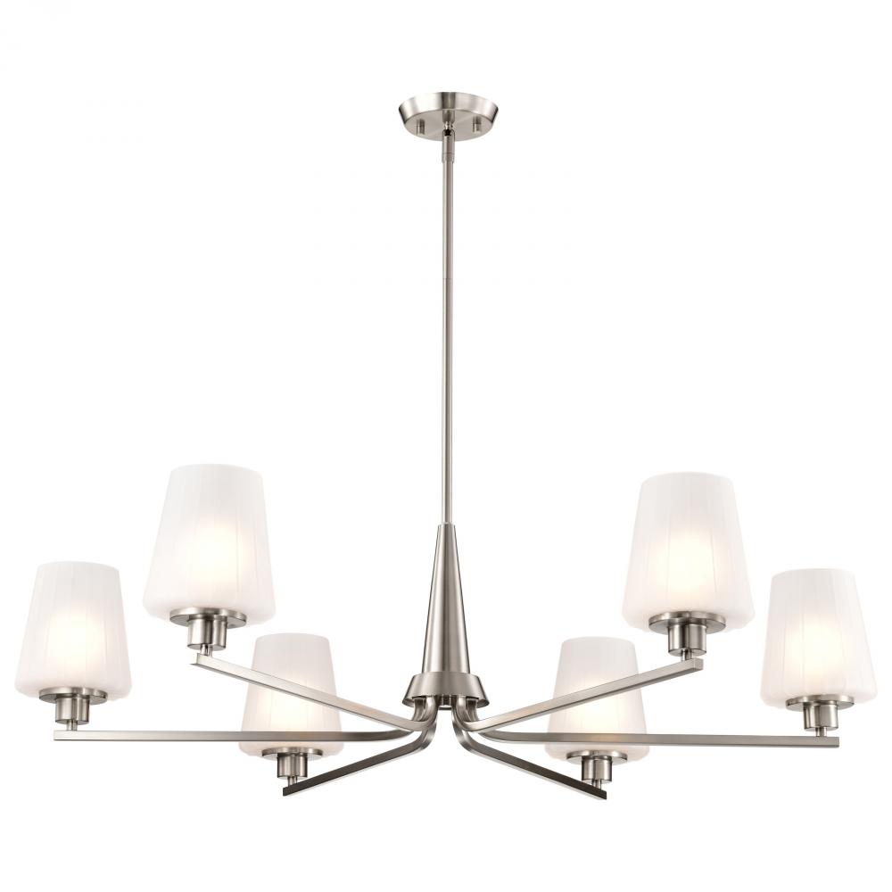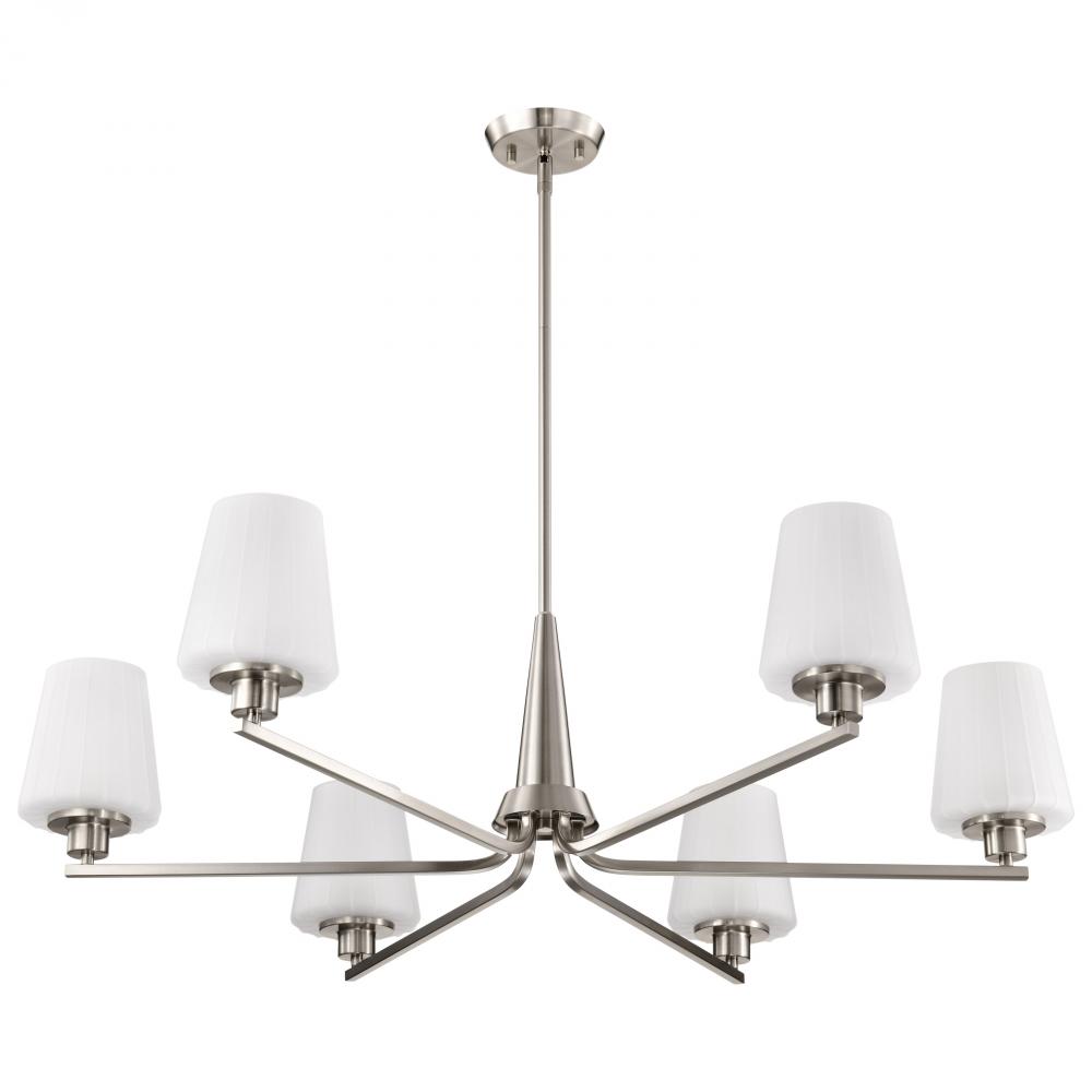 Lune; 6 Light Chandelier; Brushed Nickel Finish; Etched White Glass
