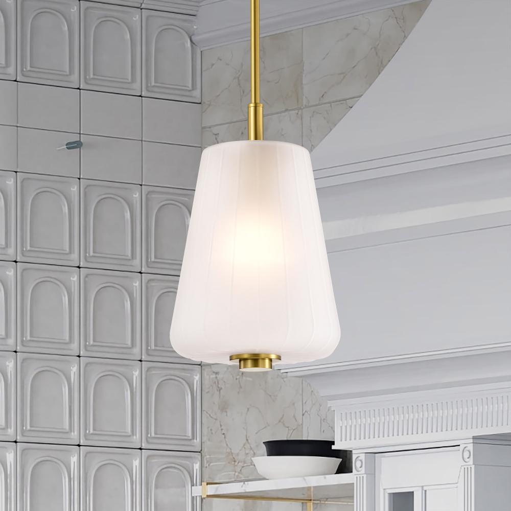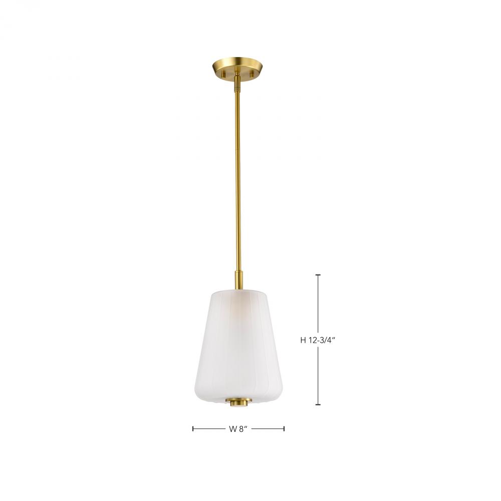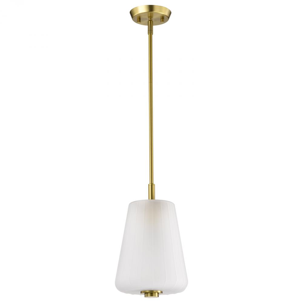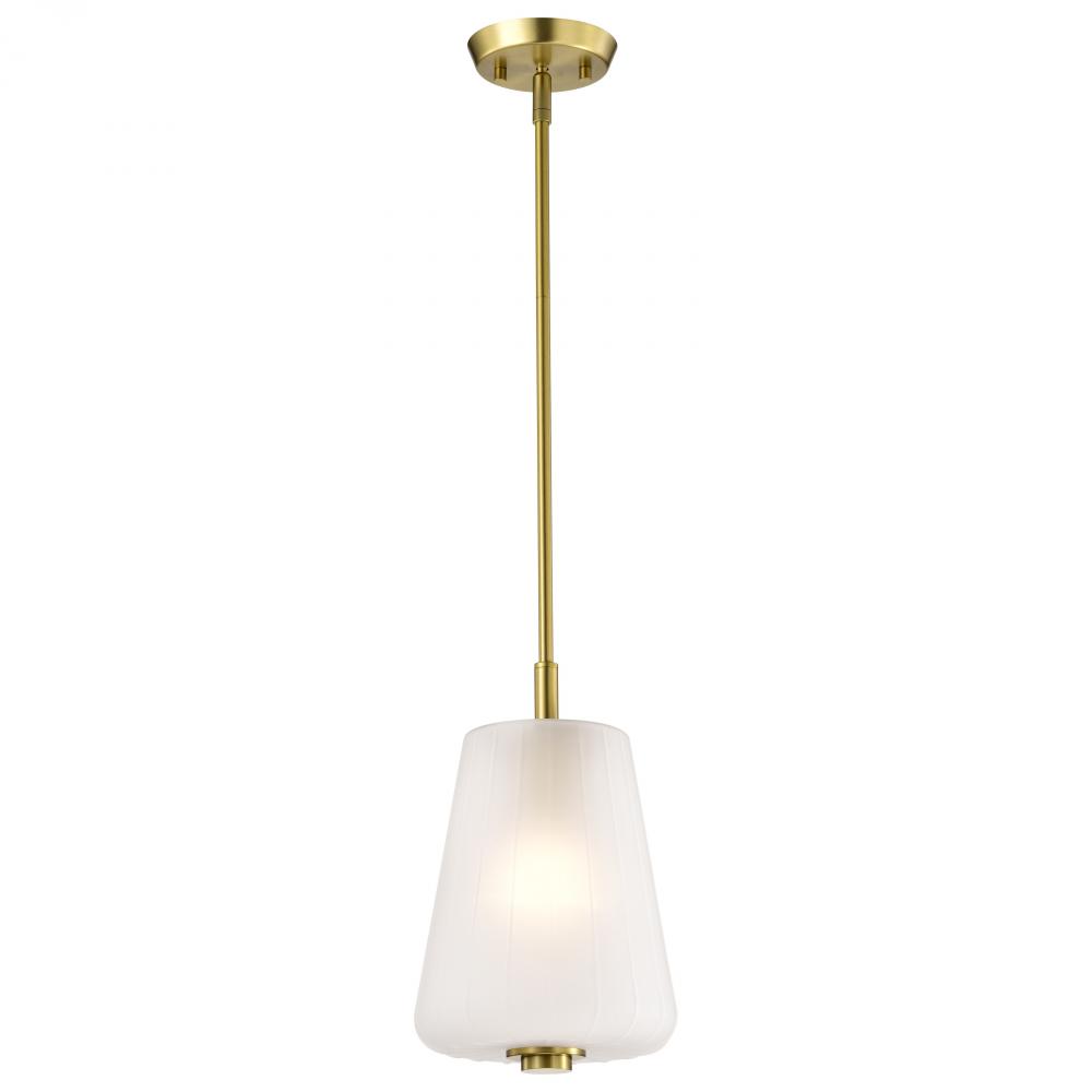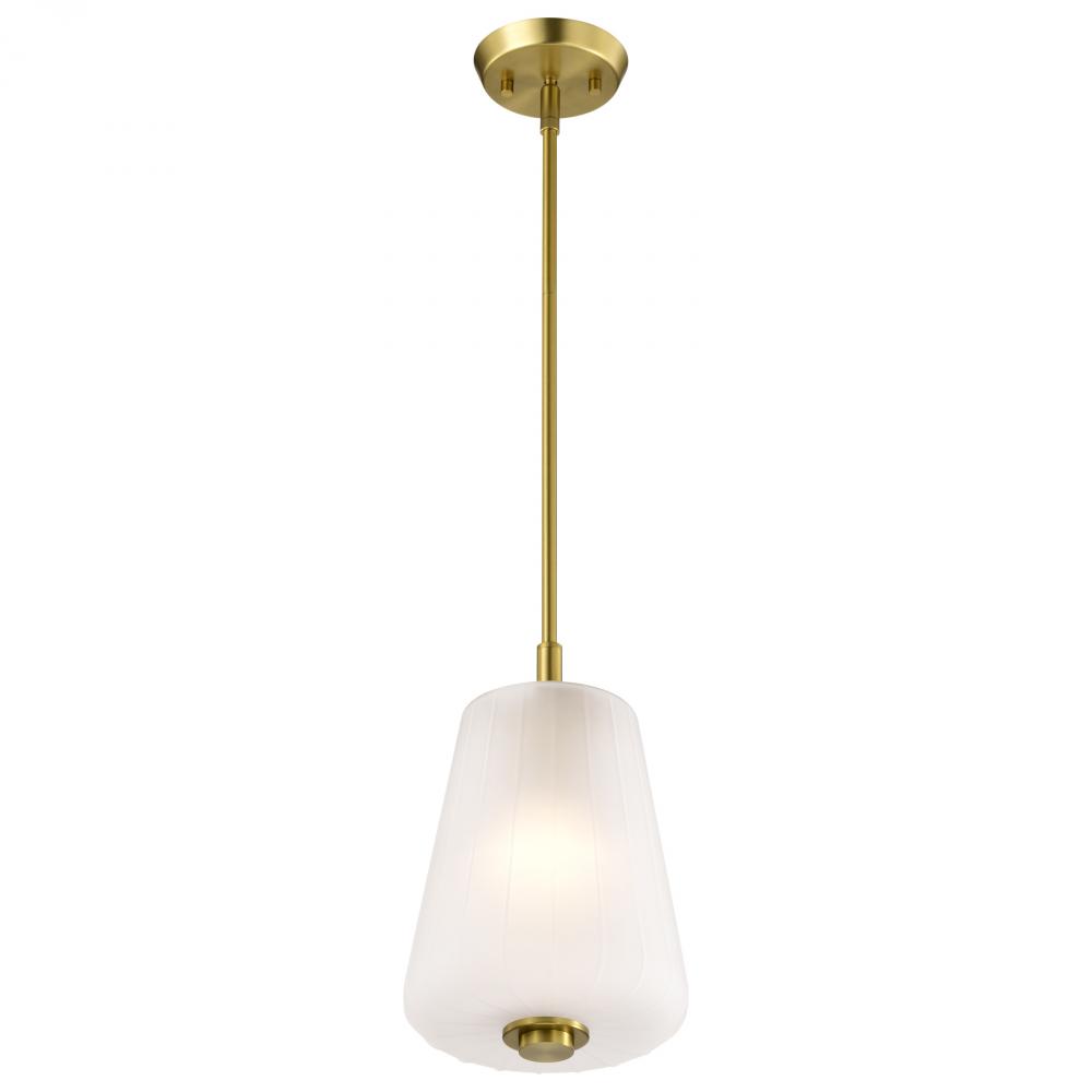 Lune; Mini Pendant; Vintage Brass Finish; Etched White Glass
