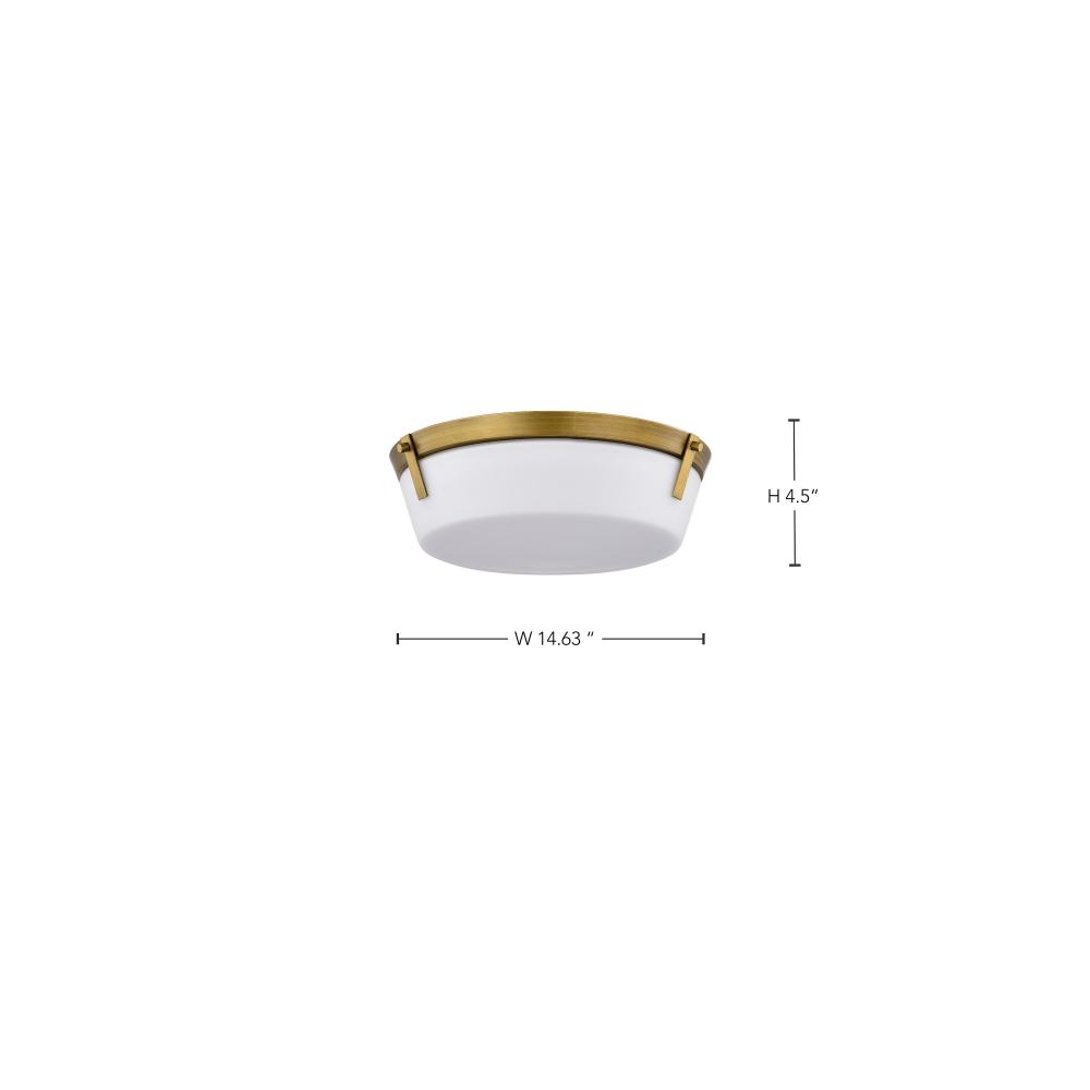 The Rowen Collection is a versatile series of flush mounts that exude elegance and sophistication. The natural brass provides a warm, inviting finish, and the etched white glass diffuses the light to create a soft and ambient glow. Rowen suits a variety of