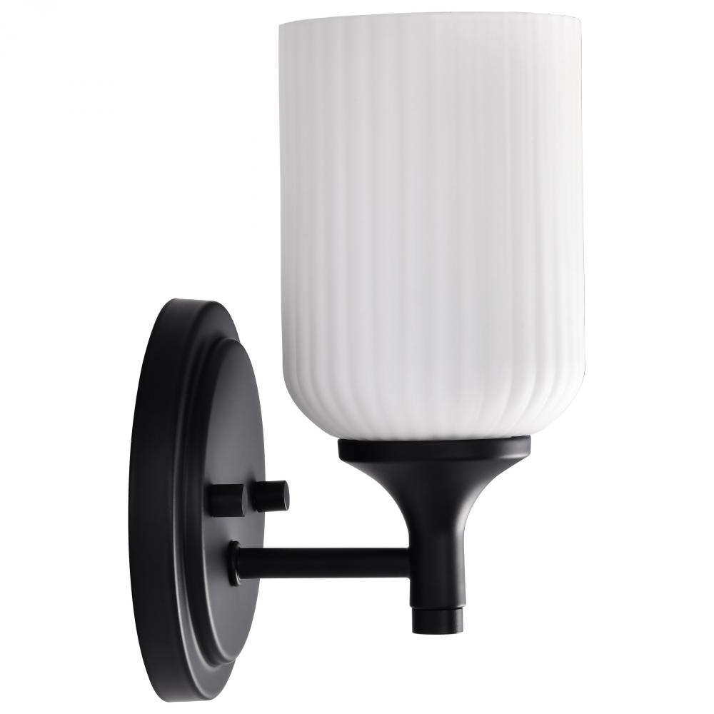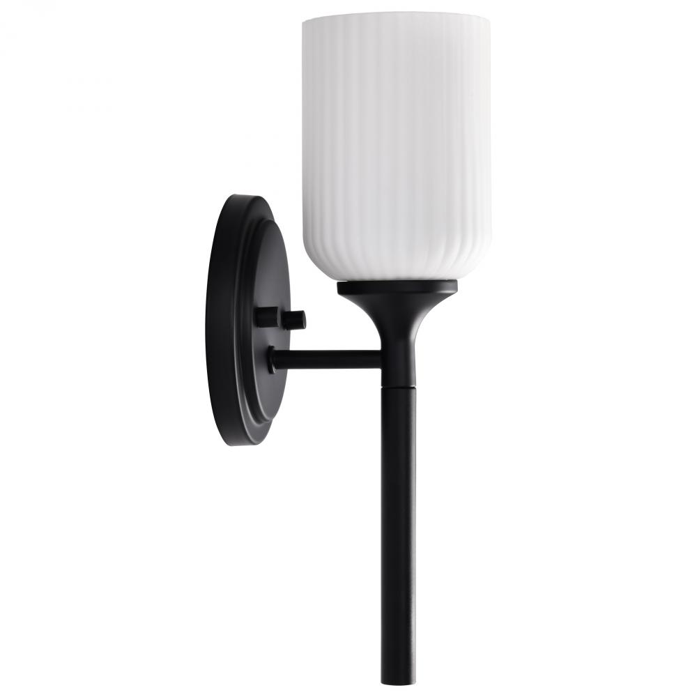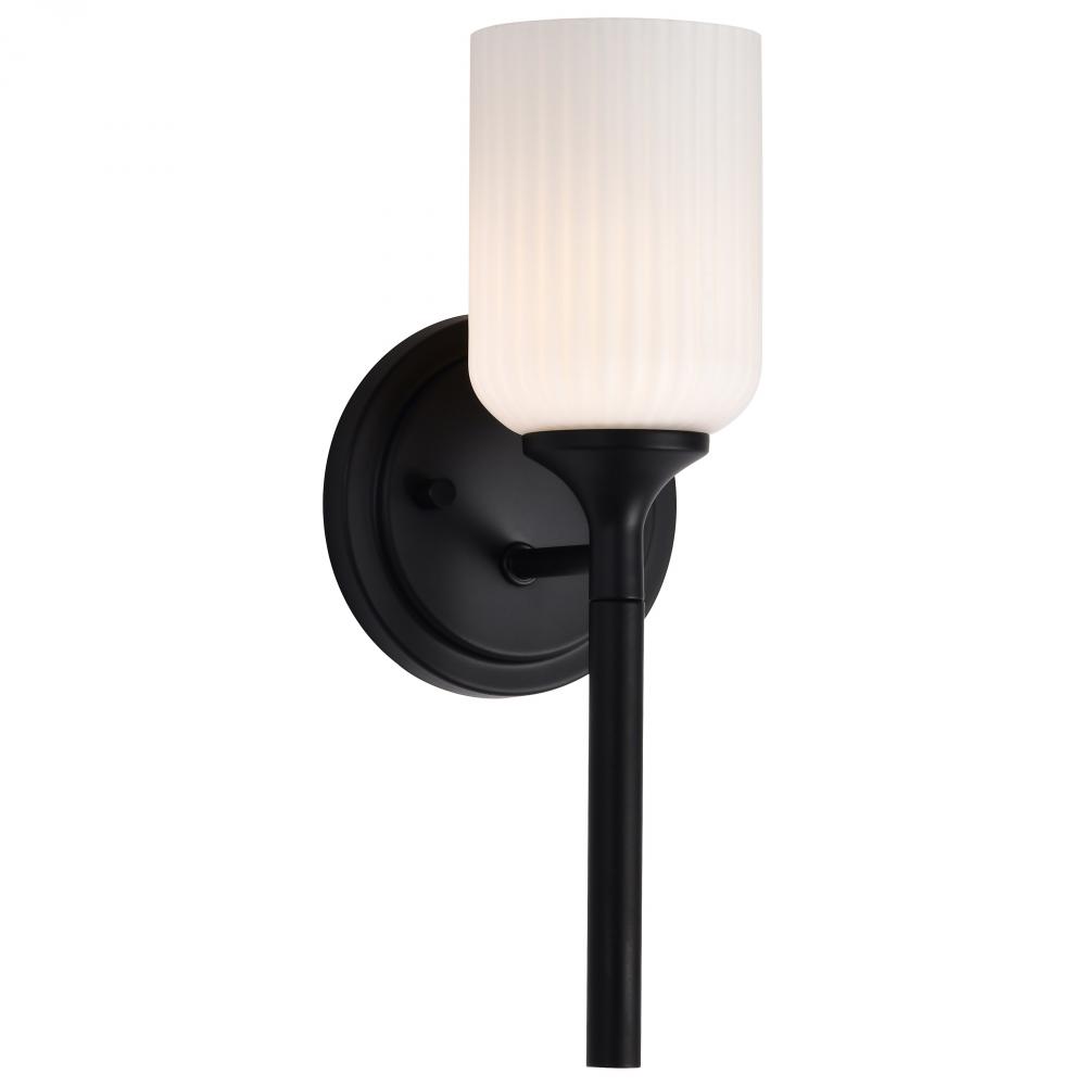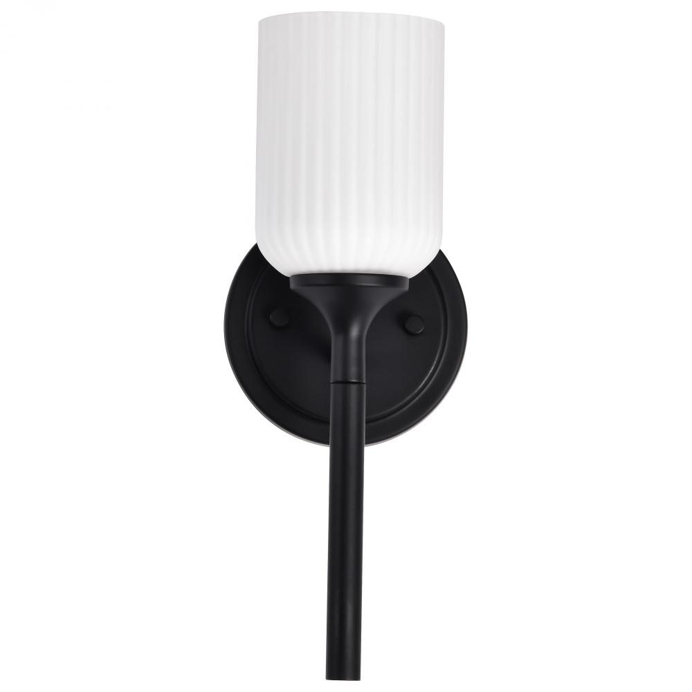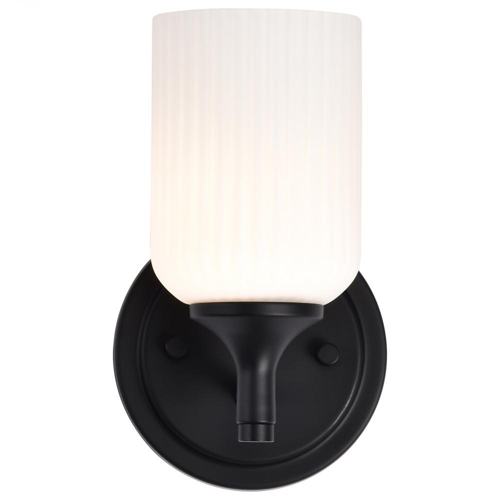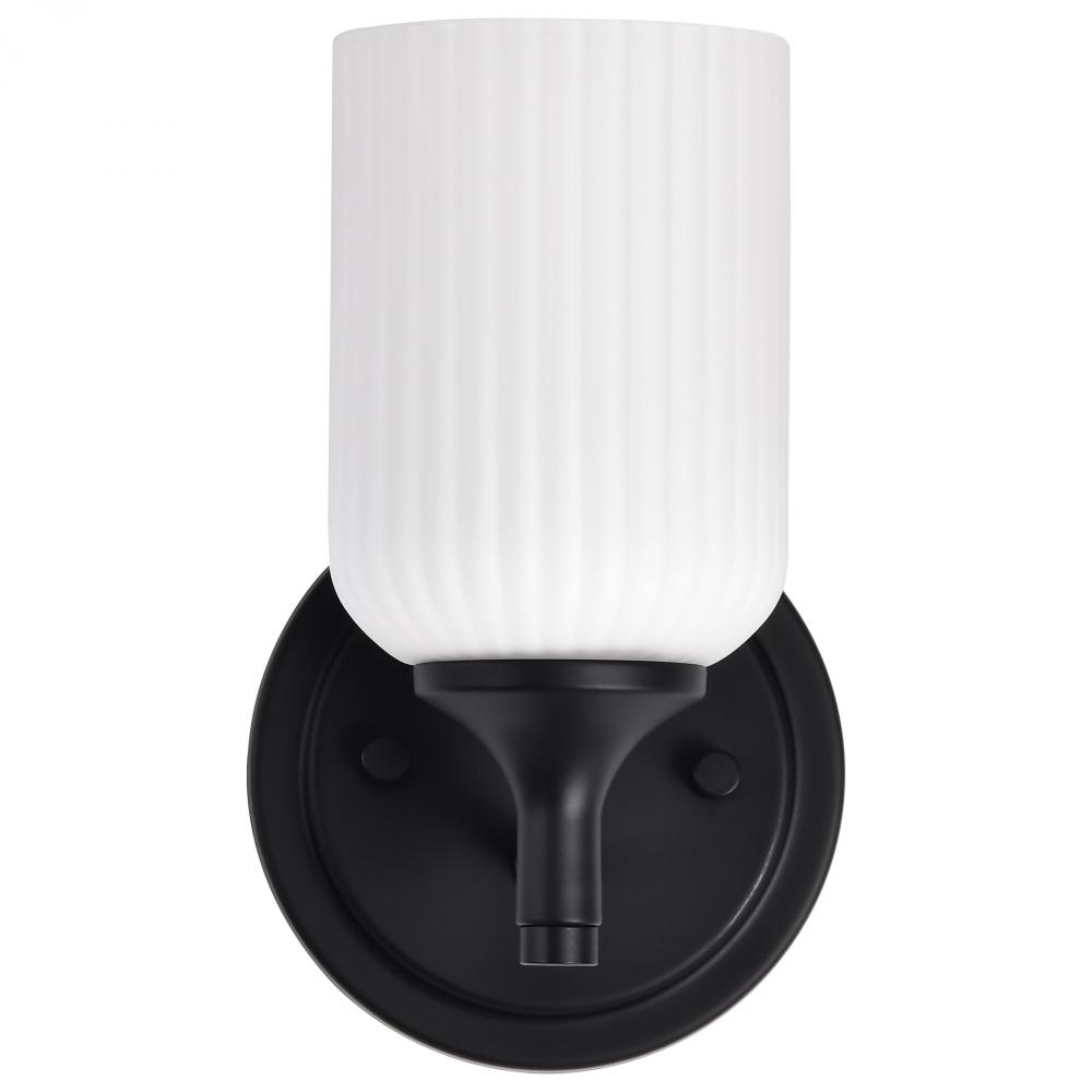 Finished in Matte Black with Frosted Ribbed Glass