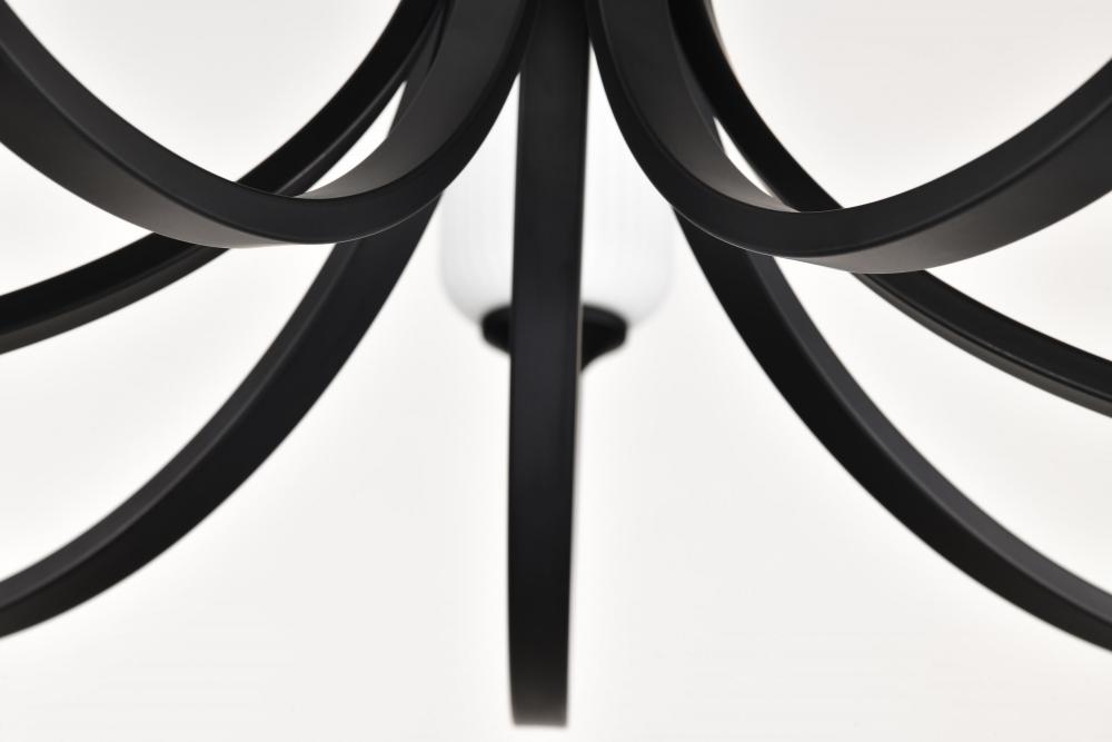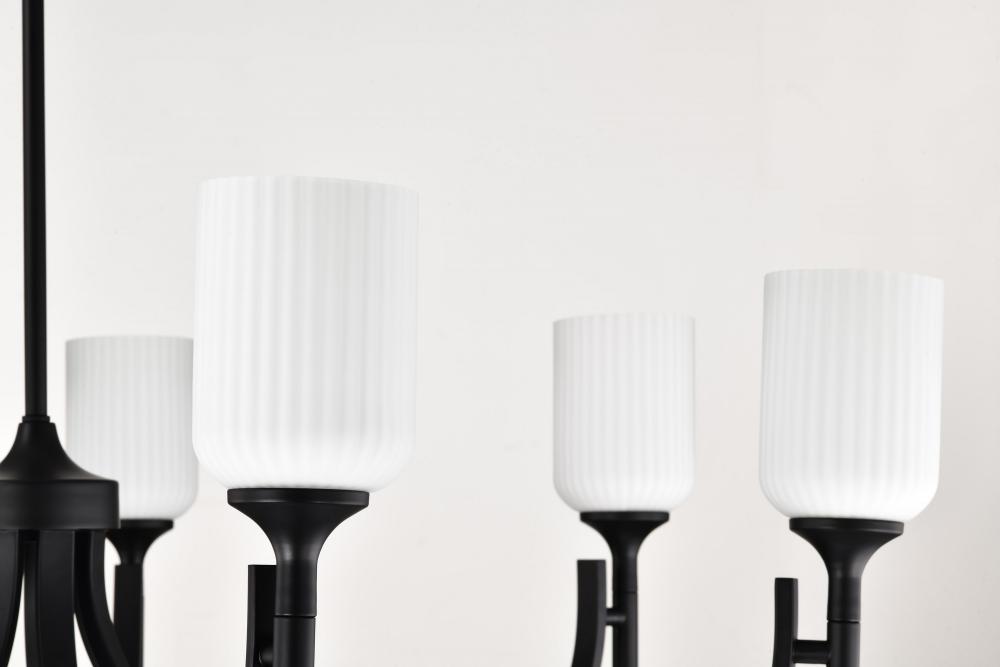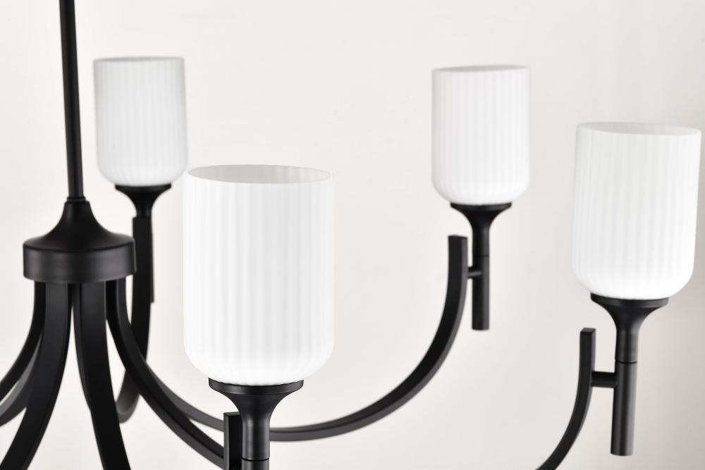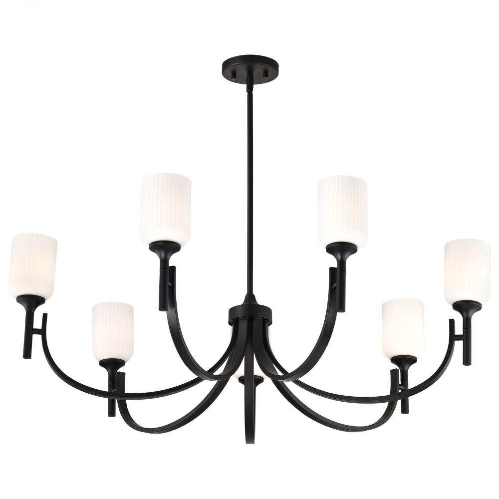 Solara; 7 Light Chandelier; Matte Black Finish; Frosted Ribbed Glass