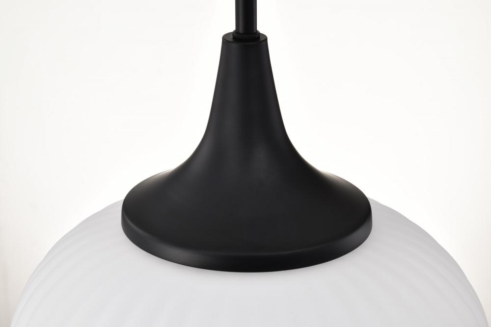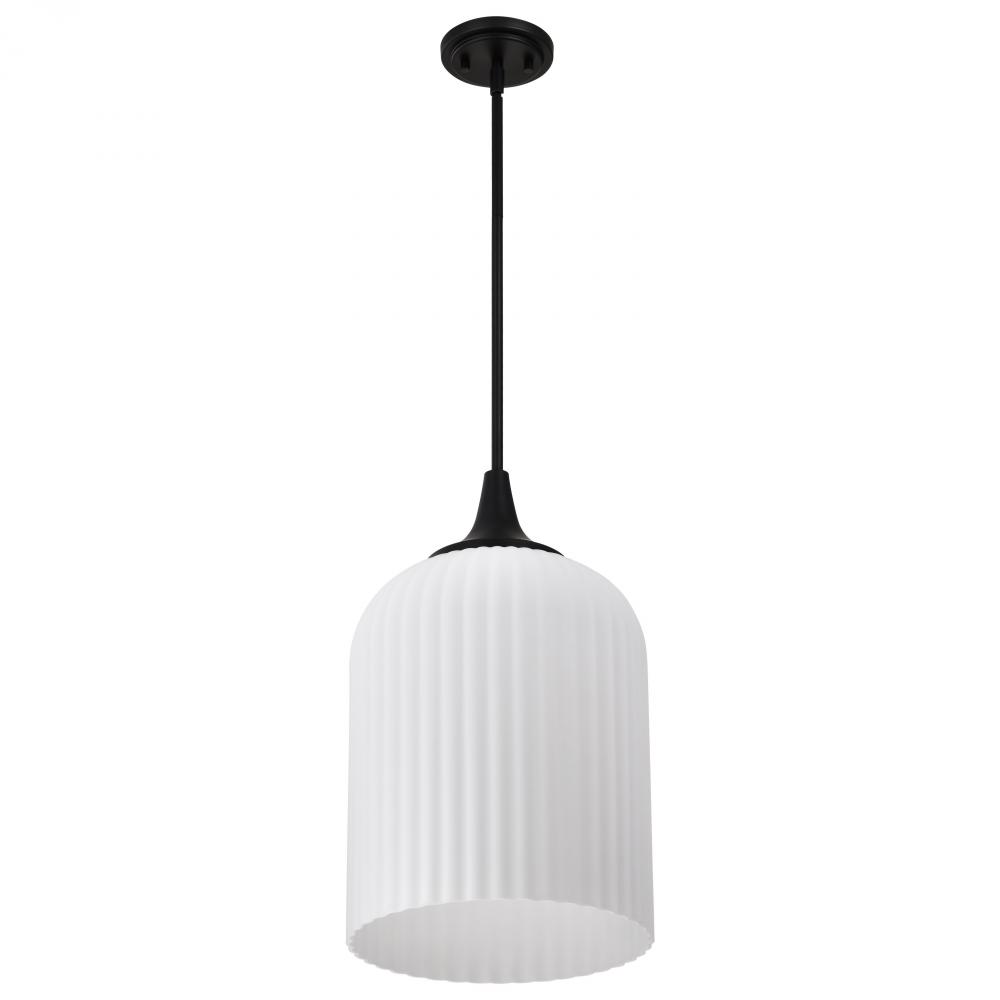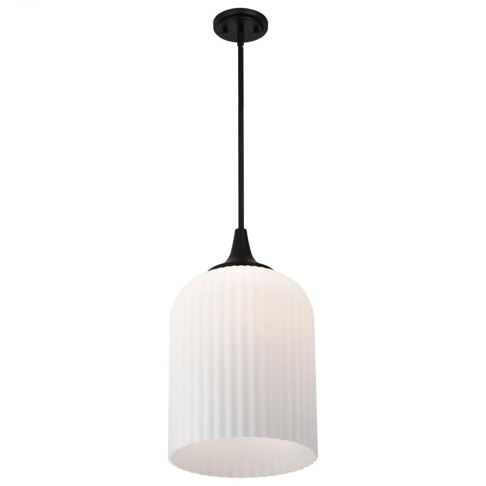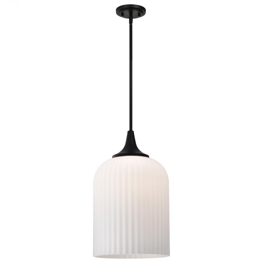 Solara; Pendant; Matte Black Finish; Frosted Ribbed Glass