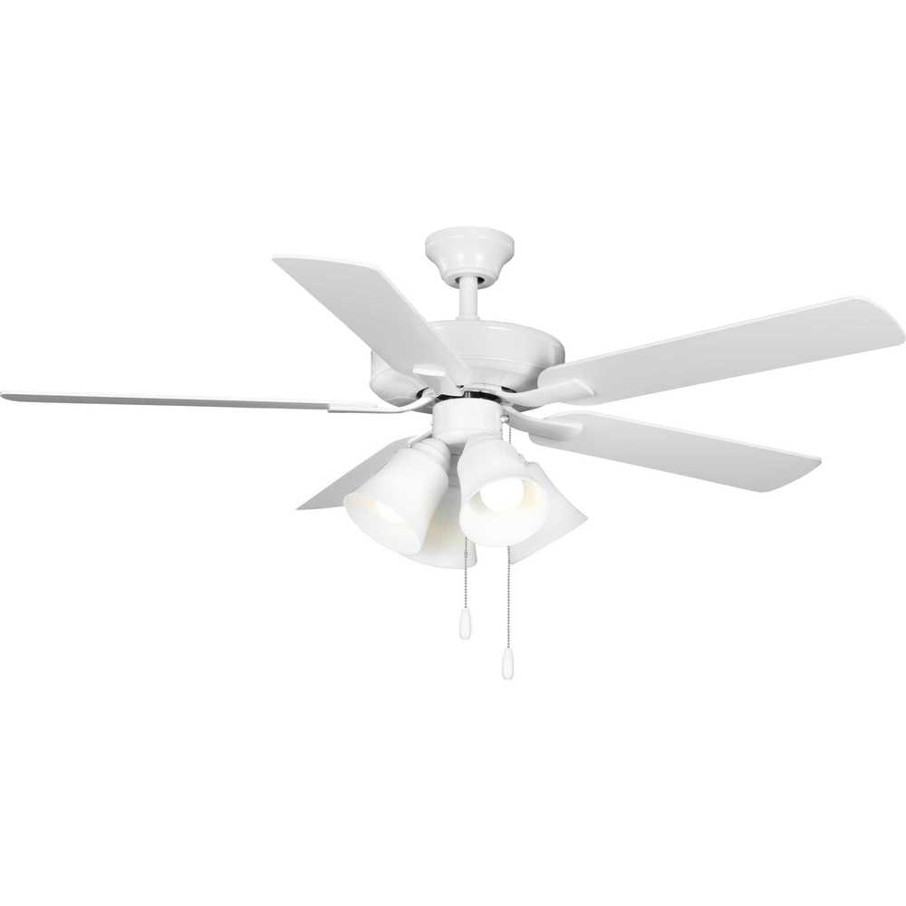The AirPro 52” 5-blade ceiling fan refreshes interiors with a sleek, modern form coated in crisp white finish. Five clean-lined fan blades extend outward from a streamlined motor housing that contains a powerful AC motor. Its versatile yet timeless design makes it ideal for a wide range of interior décor styles. The fan has an AC motor for maximum efficiency. Four shatterproof light shade in Etched White offers durability and optimal, even illumination. Four dimmable medium based LED lamps (9W, 90CRI, 3000K) are included. An accessory wall and remote control can be added (sold separately). The fan can be installed on a flat or sloped ceiling. The blade arms have Captive Screws allowing for easier installation.