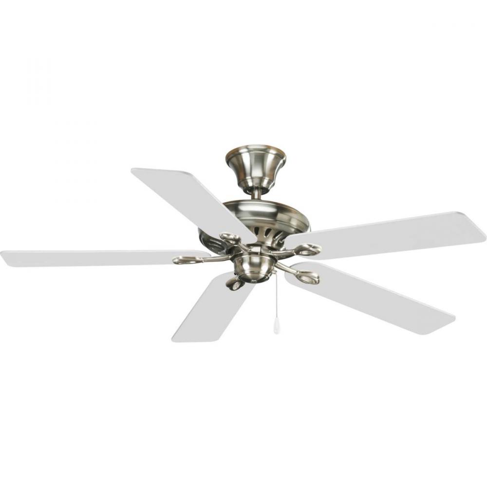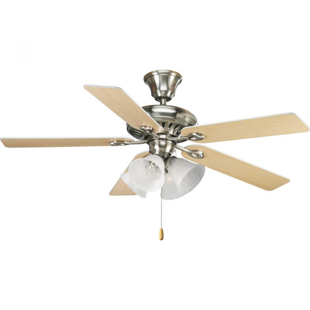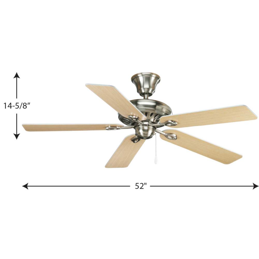 52" AirPro ceiling fan features five reversible blades;Reversible White/Natural Cherry blades;AirPro ceiling fan with Brushed Nickel finish;Pull chain is chrome with white fob;Indoor ceiling fan ideal for use in great rooms, living rooms, bedrooms and