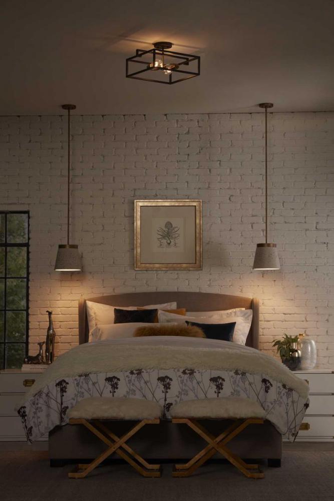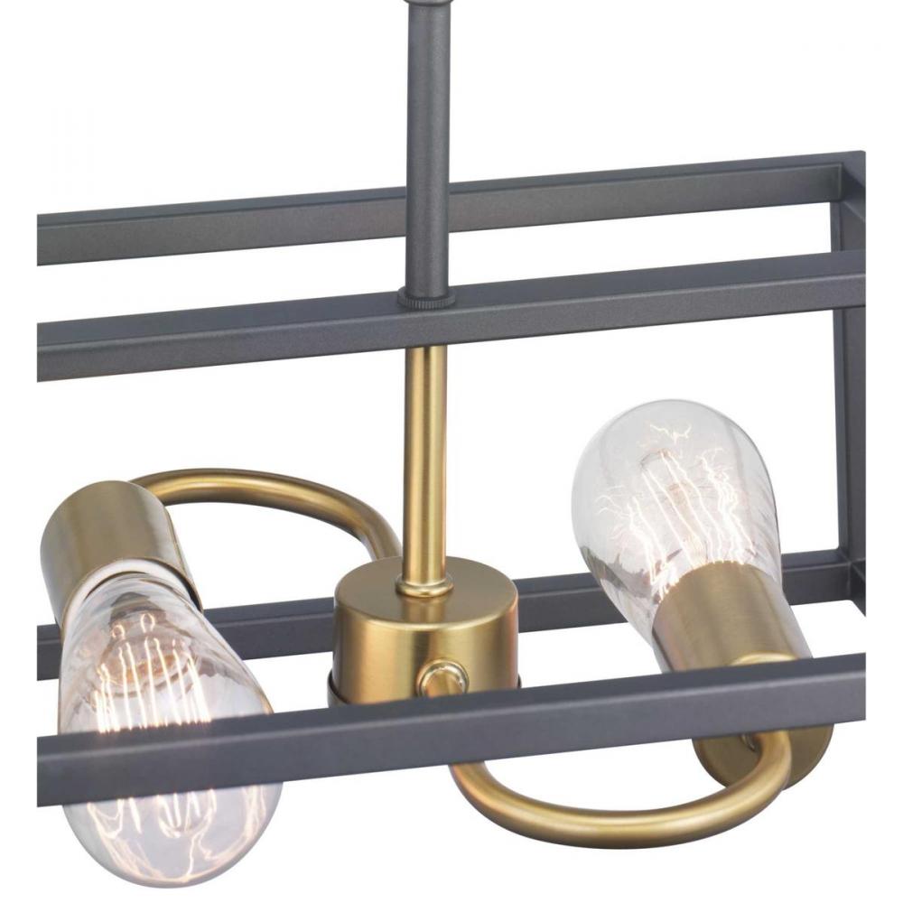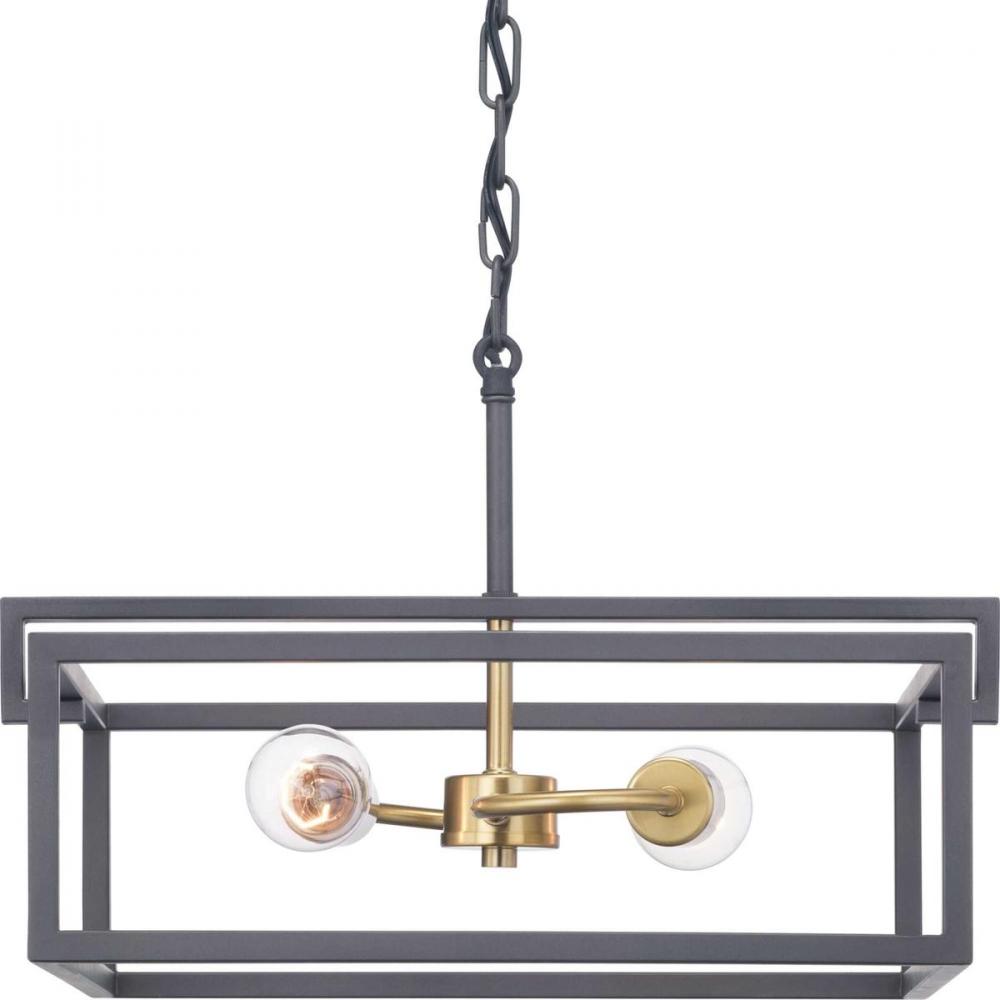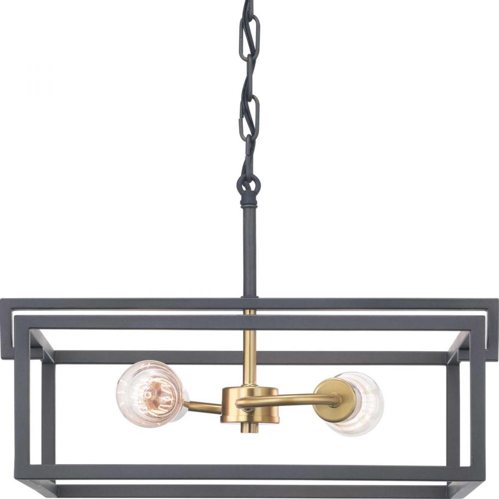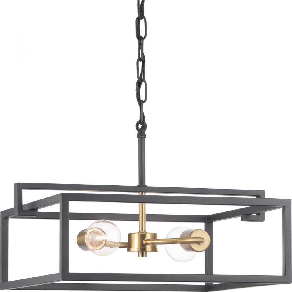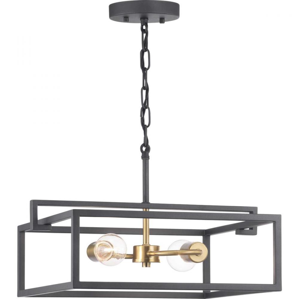 The Blakely collection two-light semi-flush reversible fixture is a fashion-forward design style. A rectangular frame celebrates geometric interplay with clean, straight lines. Finished in Graphite with satin brass accents, the Blakely collection is ideal for Modern and Traditional interiors.