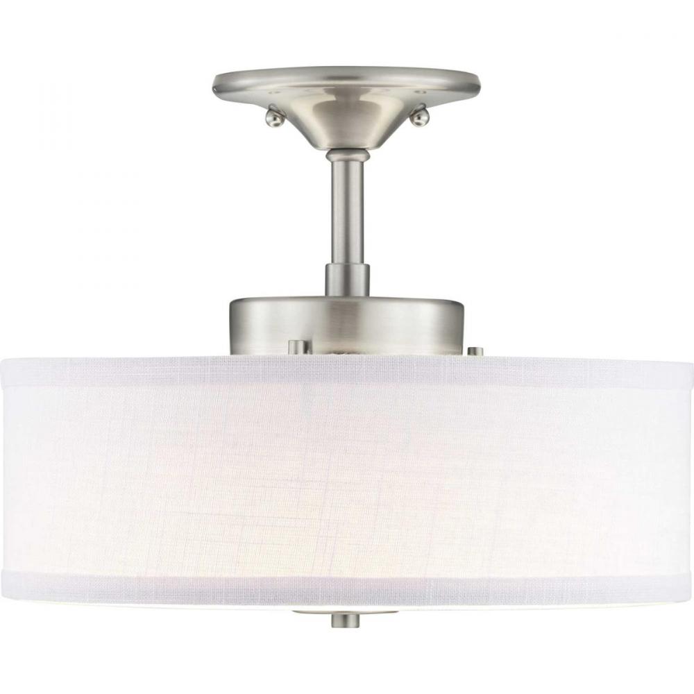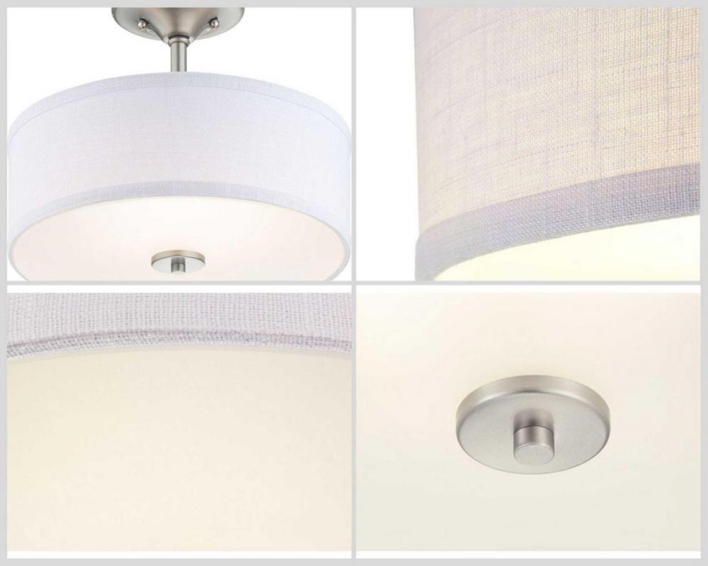 Harkening back to a simpler time, the Inspire Collection freshens traditional forms with flowing lines. The LED semi-flush fixture features an etched glass diffuser with a summer linen shade finished with Brushed Nickel details. This fixture is suitable for a variety of design styles, including Modern, Traditional and Farmhouse and the simple design is a perfect complement to a variety of fixture collections.