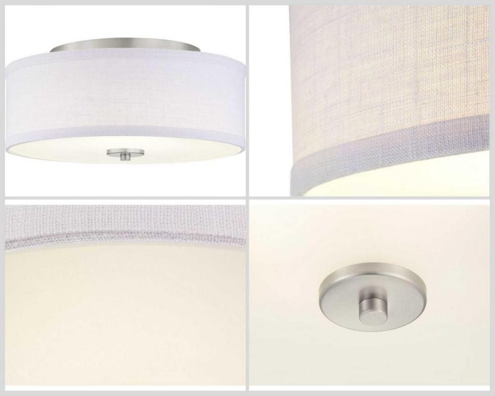 Gives a dash of flair to the standard ceiling light;Fits seamlessly within Modern, Traditional and Farmhouse interiors;Silky Brushed Nickel finish;Measured 13in diameter x 6in ht.;Contains one 17W LED Module;1,452 lumens 83 lumens/watt (source), 3000K colo
