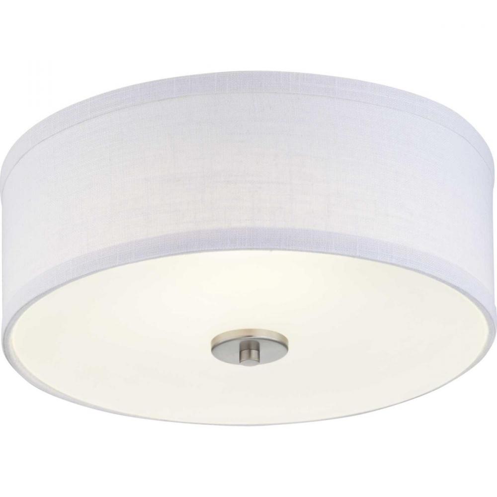 Harkening back to a simpler time, the Inspire Collection freshens traditional forms with flowing lines. The LED flush mount fixture features an etched glass diffuser with a summer linen shade finished with Brushed Nickel details. This fixture is suitable for a variety of design styles, including Modern, Traditional and Farmhouse and the simple design is a perfect complement to a variety of fixture collections.