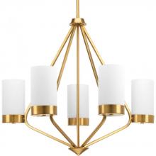 Achieve a mid-century modern look with Elevate, which boasts glass shades and a frame inspired by Space Age styling. The trapezoidal form is accentuate in the Polished Chrome finish. This five-light chandelier is part of our Design Series collections.