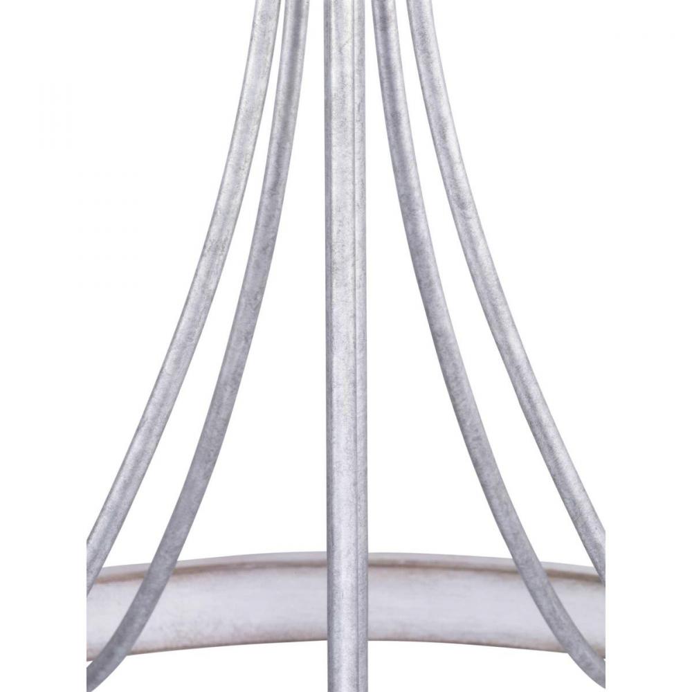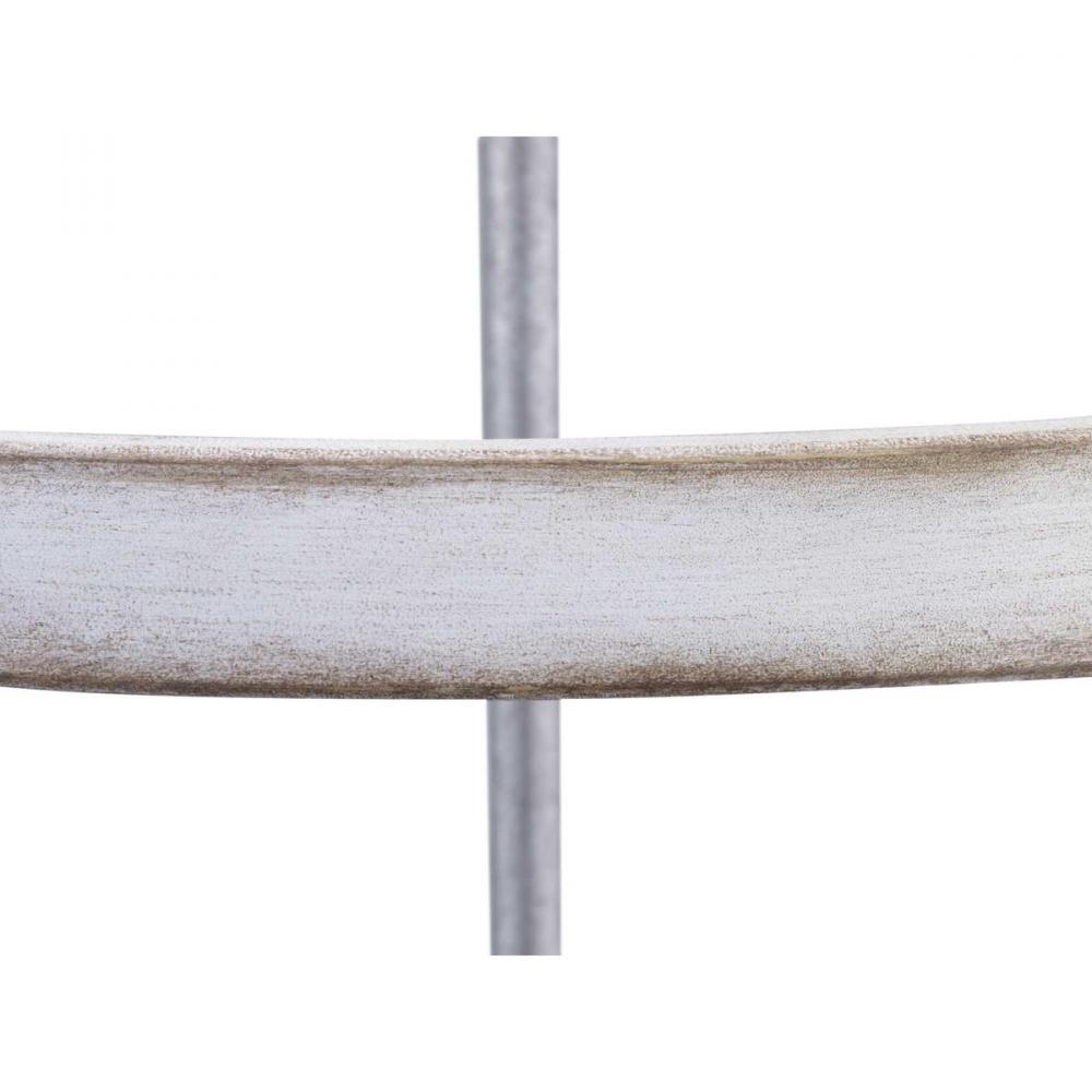 The five-light chandelier in the Gulliver Collection features arching and delicate details that curve to create an airy design. Dual toned frame color combinations in a Galvanized finish with antique white accents The hand painted wood grained texture finished to emulate weathered driftwood complements Rustic and Modern Farmhouse home decor, as well as Urban Industrial and Coastal interior settings.