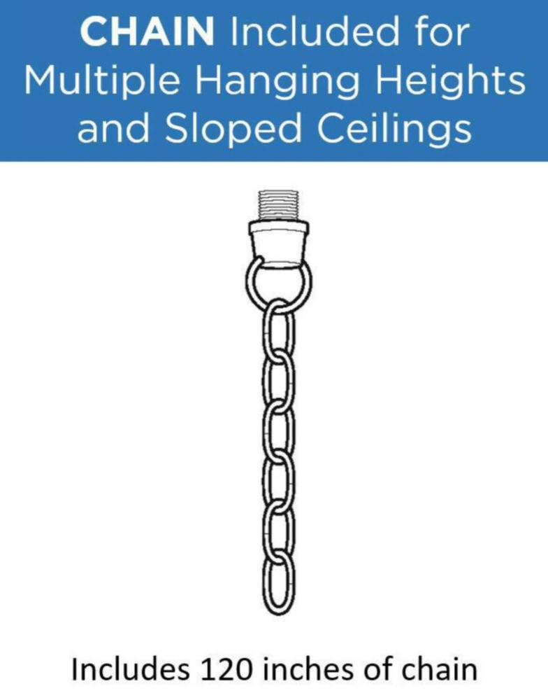 Brushed Nickel finish.;Rectangular arms with strap accents create a bold sculptural design.;White etched tulip-shaped glass shades.;10 feet of 9 gauge chain is supplied for ceiling chain mount.