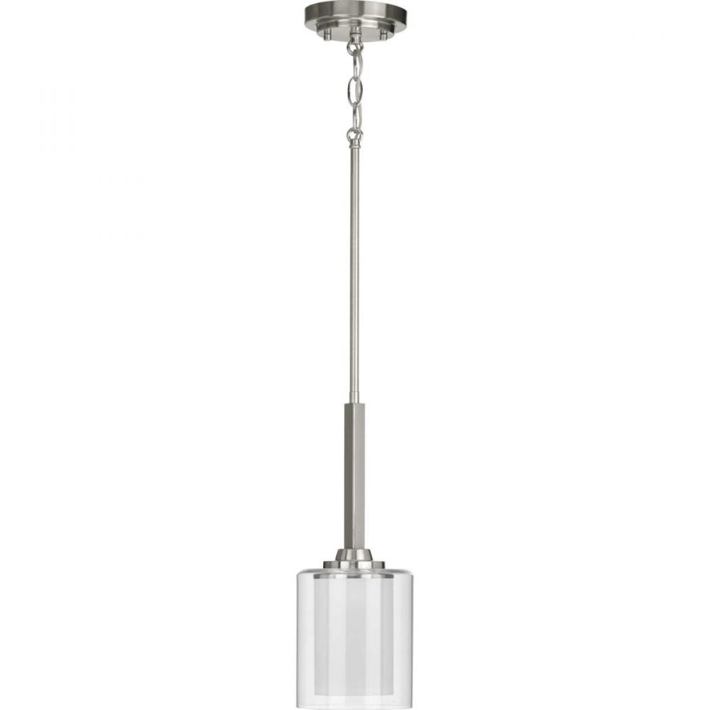 Add A Modern Romance To The Heart Of Your Home With This Lovely Mini-Pendant. Quiet Etched Glass Diffuser Are Surrounded By Clear Outer Glass Shade For A Soft, Luxurious Touch. The Shades Are On An Elegant Brushed Nickel Frame Suspended From A Square Arm.