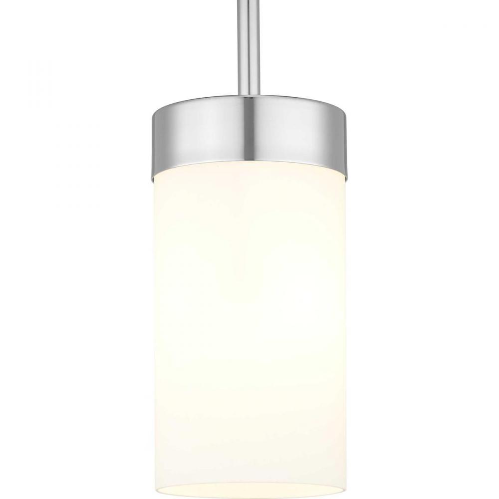 Achieve a mid-century modern look with the Elevate Collection one-light mini pendant, which boast an etched white glass shade and a frame inspired by Space Age styling in a Polished Chrome finish. This fixture is part of our Design Series collections.