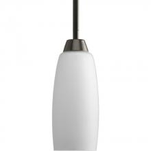 The Wisten Collection features sweeping arcs framing elegant, tapered glass shades. Cool and modern with a casual flair, Wisten provides a signature look to any room. Universal style for use with fans that accept an accessory light. One-light mini-pendant with elegant arm and etched glass. Incorporates a minimalist design style and represents a shift in trends to highlight a less complicated, clean design.