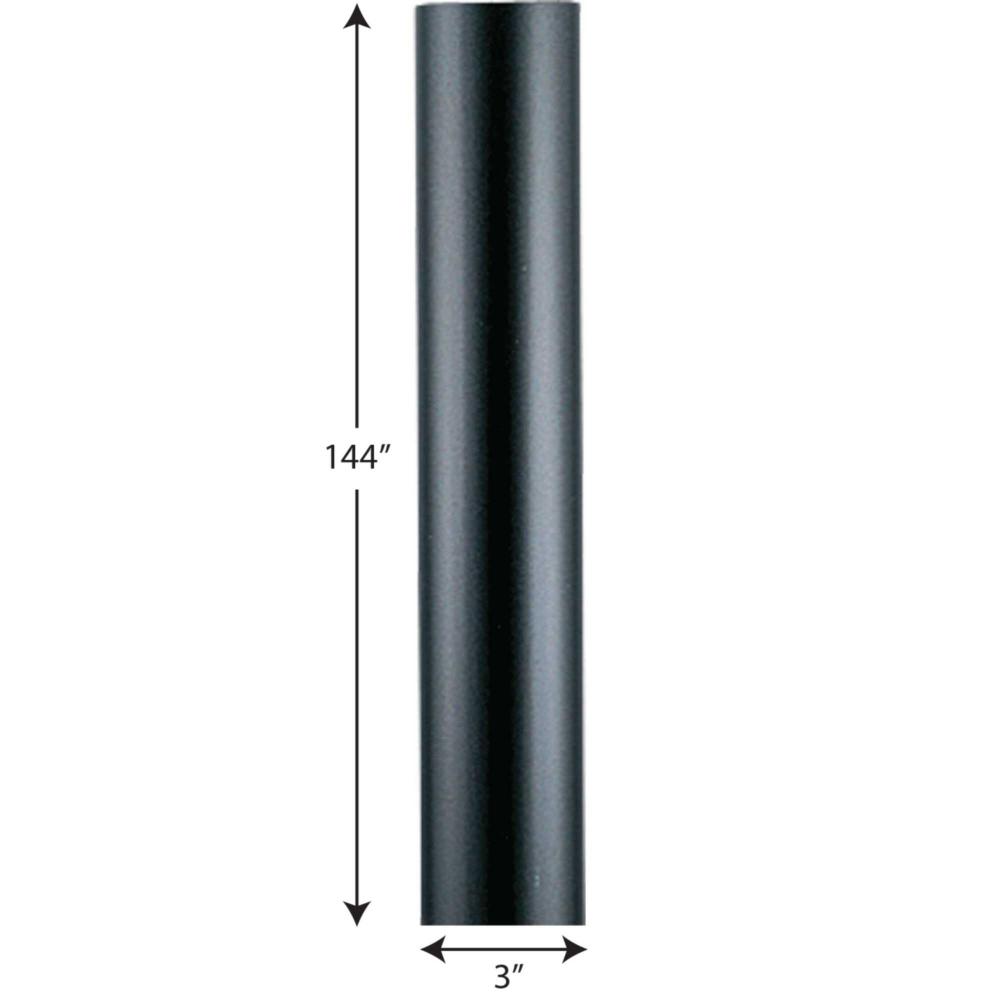 Black finish.;12 foot post for higher mounting applications.;0.125" (± 0.015") wall thickness.;Can be cut to desired length.;In ground mount.;Recommend setting post in concrete fill.;Accepts any single lantern which fits a 3" post.;Can be inst