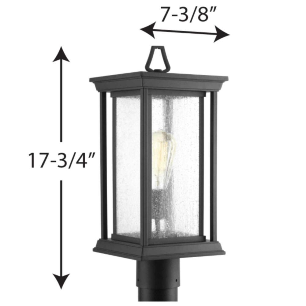 Features a Craftsman-inspired silhouette;An outdoor lantern with an elongated frame.;Frame is finished with clear seeded glass;Black finish.;Fits 3" post. (order separately.).