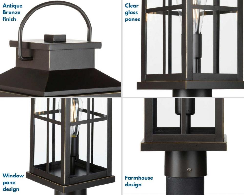 Application: Bring timeless details into a fresh silhouette with the Williamston Collection 1-Light Antique Bronze Clear Glass Farmhouse Outdoor Post Lantern Light ideal for any yard, lawn, pathway, garden, or driveway;Styles: Perfect for transitional and