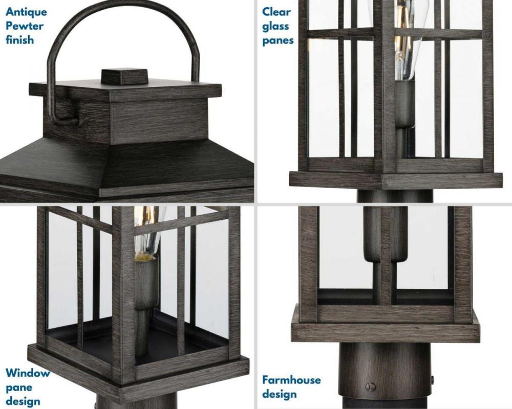 Application: Bring timeless details into a fresh silhouette with the Williamston Collection 1-Light Antique Pewter Clear Glass Farmhouse Outdoor Post Lantern Light ideal for any yard, lawn, pathway, garden, or driveway;Styles: Perfect for transitional and