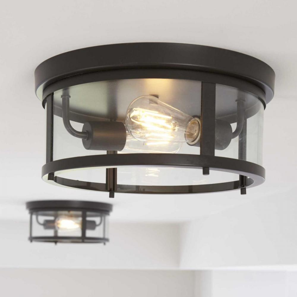 Gunther lanterns provide an affordable and stylish option to update a home's curb appeal. Inspired by the popular farmhouse design trend, these cylindrical lights provide the perfect showcase for vintage style light bulbs. The two-light flush mount features clear glass finished in Antique Bronze.
