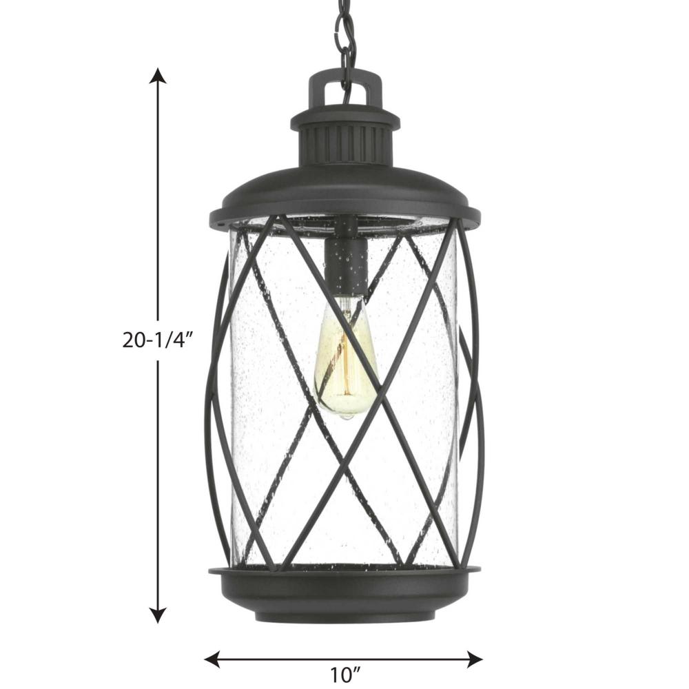 Hollingsworth lanterns feature a crisscross design that surrounds clear seeded glass, emulating popular farmhouse decor;Ideal for a variety of transitional exteriors when paired with either vintage or traditional bulbs;Textured Black finish;Hanging lantern