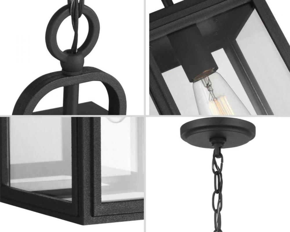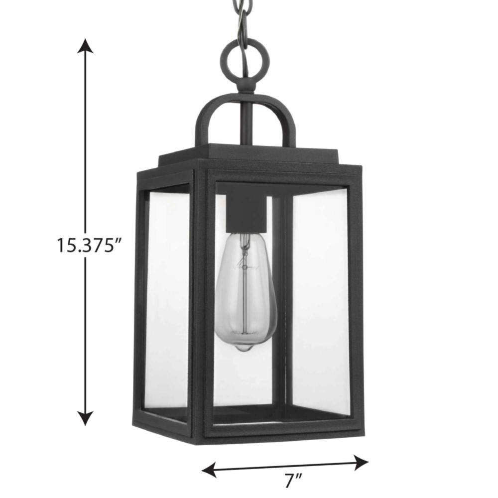 This Hanging Lantern Partners Timeless Elegance With A Pinch Of Coastal Vibe. A Beautiful Black Square Frame Crafted From Corrosion-Proof Composite Polymermaterial Features A Half Loop On Top Of Its Structure. The Frame Holds Clear Glass Panes In Place For A Look Sure To Complement Other Farmhouse And Coastal Decor. Durashield By Progress Lighting Is Built To Last. Constructed From A Composite Material With Uv Protection, Durashield Holds Up Even In The Harshest Weather Conditions. This High-Performance Finish Has A 5-Year Warranty And Is Resistant To Rust, Corrosion, And Fading.
