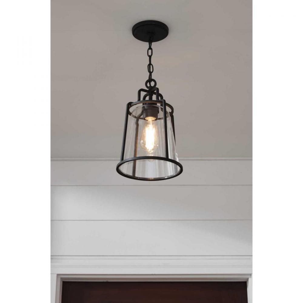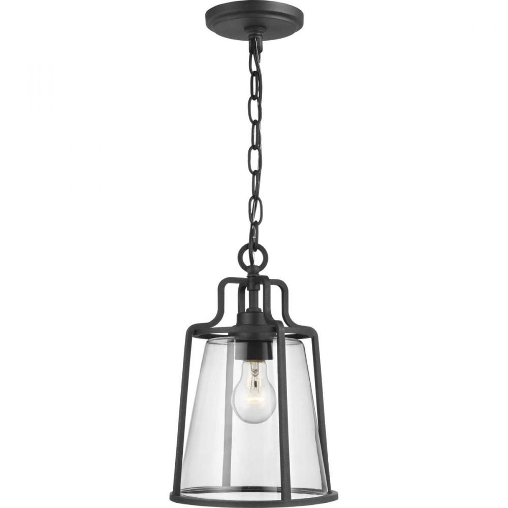 This hanging lantern is expertly crafted with that casual, coastal style you love. A clear glass shade shields a simple light base for a seaside-living vibe. The shade is cradled inside an open-cage black frame featuring thin bars and constructed with a composite polymer, corrosion-resistant housing. DURASHIELD by Progress Lighting is built to last. Constructed from a composite material with UV protection, DURASHIELD holds up even in the harshest weather conditions. This high-performance finish has a 5-year warranty and is resistant to rust, corrosion, and fading.
