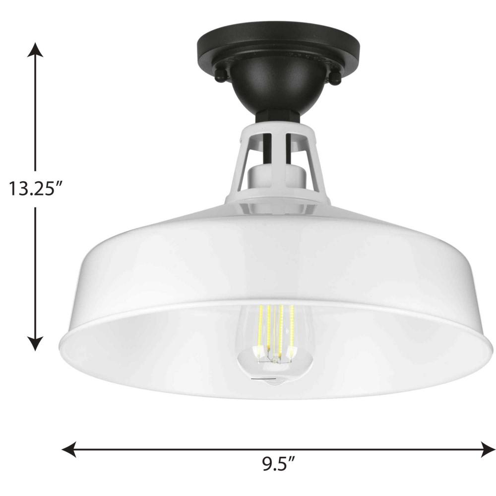 This fun take on the traditional warehouse shade provides excellent task lighting. The generous metal shade is coated in a gorgeous white finish ready to direct a helpful glow. An industrial-style ceiling plate anchors the light fixture in place and adds a touch of urban flair to farmhouse and transitional settings. Dark Sky Friendly.