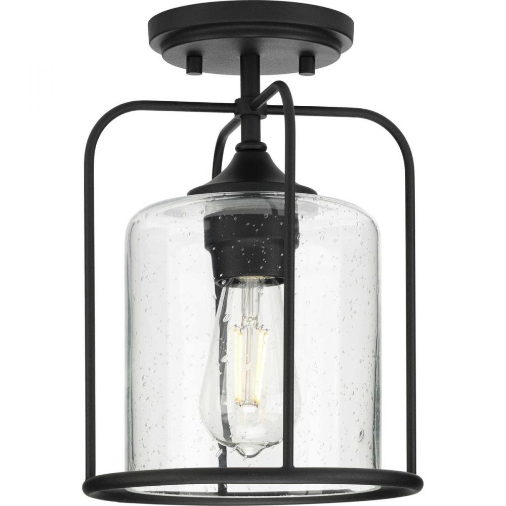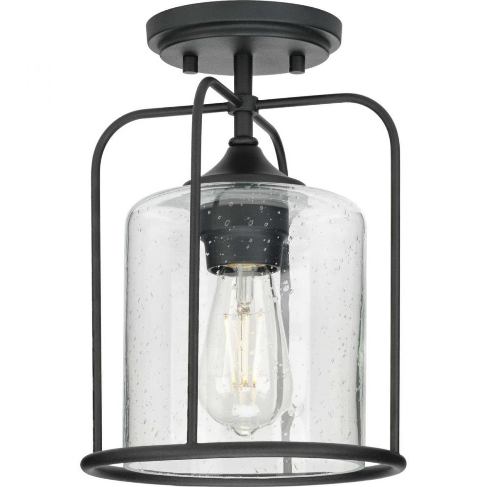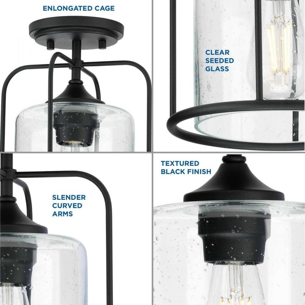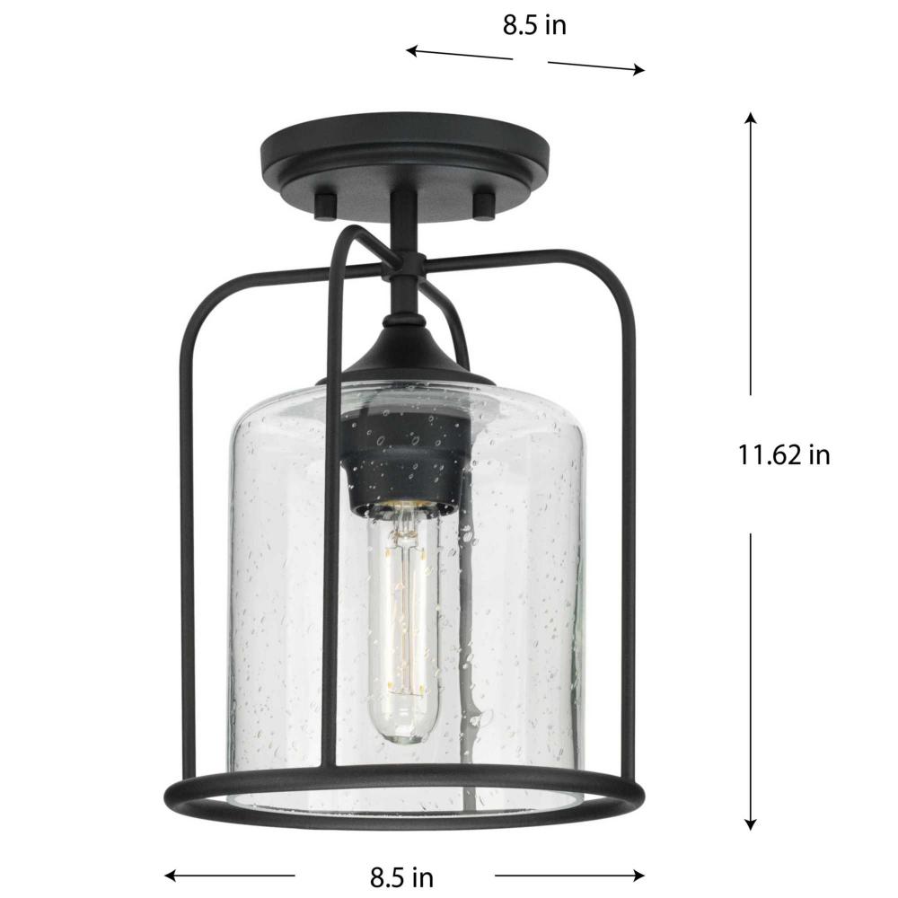 Ideal for a porch, hall, kitchen, foyer, patio, or entryway;Perfect for farmhouse and transitional style settings;Classic textured black finish;Clear seeded glass dome;Includes installation instructions and mounting hardware;Use 1 medium base base bulb tha