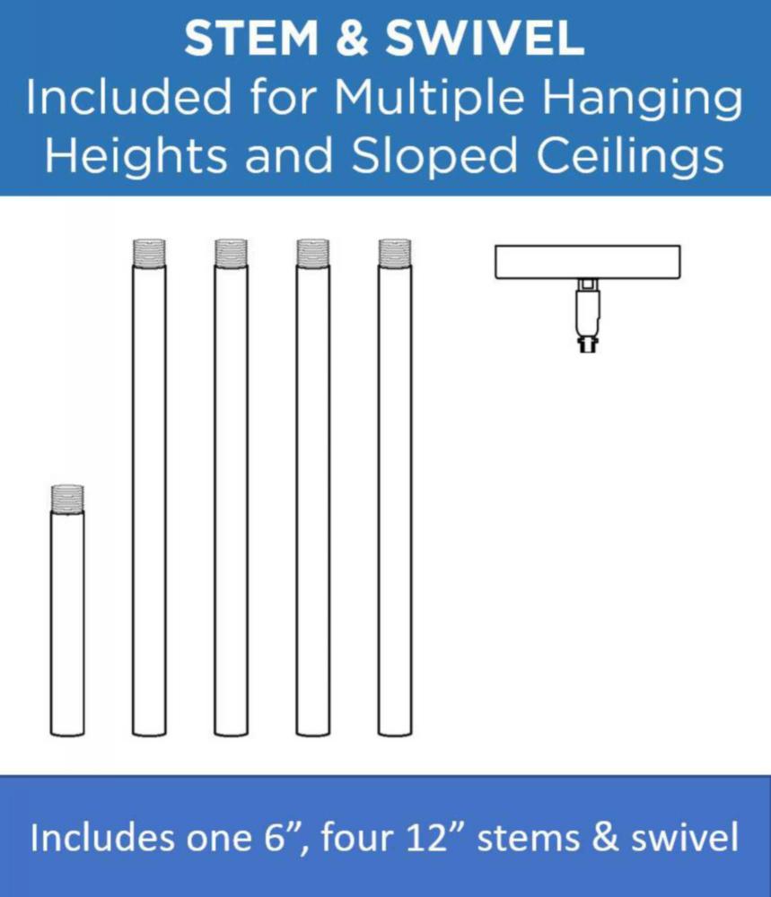 Ideal for a patio, kitchen, or porch;Perfect for farmhouse, urban industrial, and coastal style settings;Crisp white finish with textured black accents;White metal shade;Includes one 6-inch stem and four 12-inch stems to adjust for a variety of ceiling hei