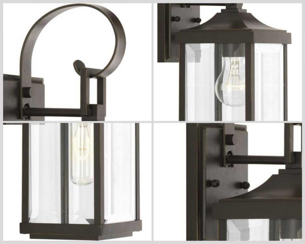 Antique Bronze finish.;Elongated frame.;Captures the romantic charm of a vintage gas lantern.;Clear beveled glass.