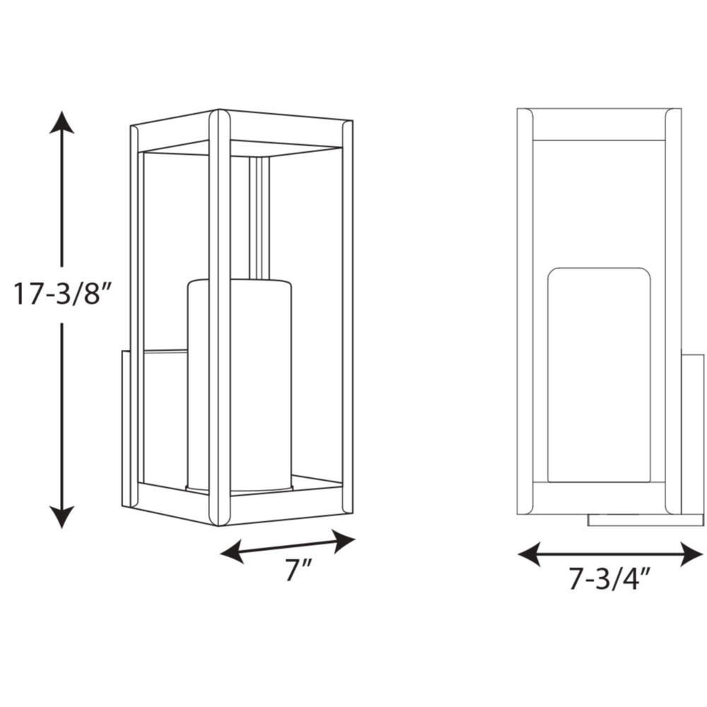 One-light large wall lantern in the Patewood Collection have a modern shadowbox housing in a sleek Black finish constructed from durable stainless steel for years of reliability. The pillar candle style diffusers provide a crisp illumination for a pleasing complement to your home’s exterior.