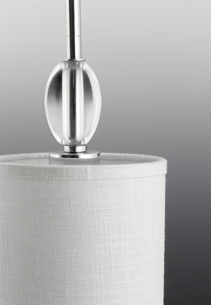Enjoy high status with a collection full of fun, femininity, glimmer and glean. Status can excite the room as K9 glass accents offer a crystal-like clarity. White fabric shade is matched perfectly with the polished chrome finish completing the fixture with a sophisticated look.