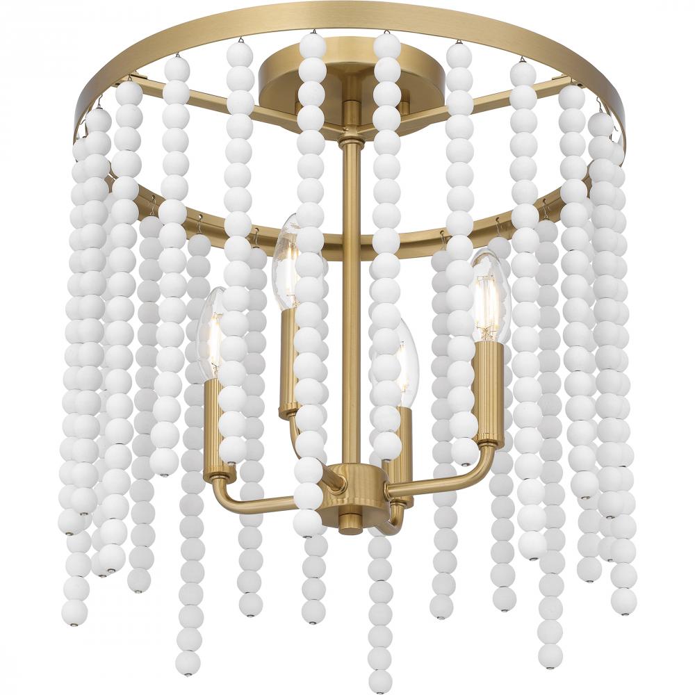 The Apelle collection takes a fun, playful approach to classic lighting design. White wood beads add a touch of glamour to the otherwise simple silhouette, while an aged brass finish completes the look with warmth. Choose from a pendant light, semi-flush m