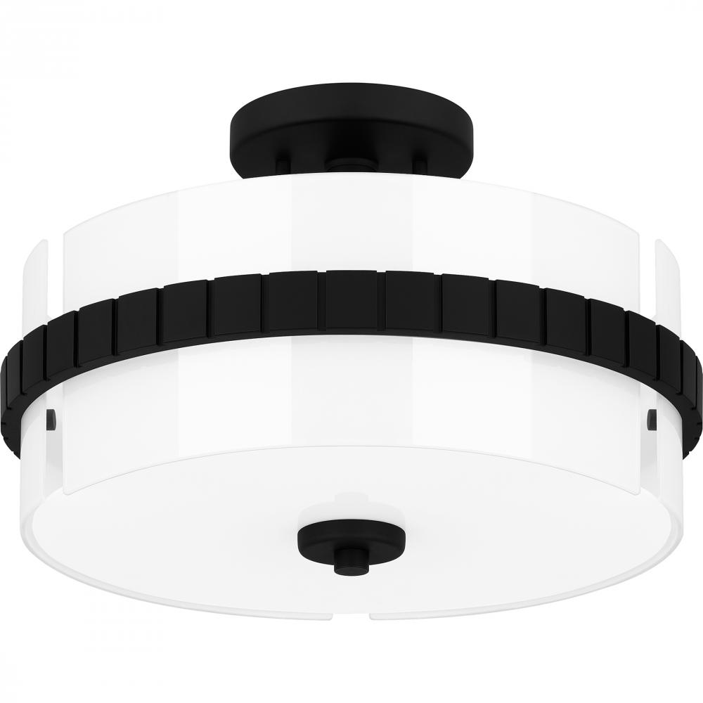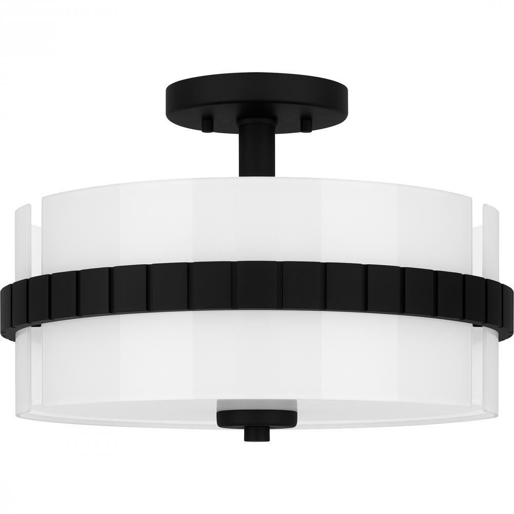 The Baud semi-flush mount is simple with a modern flourish. The clear painted white glass shade is accentuated by a textured matte black band, adding an extra layer of style. With its matte black finish and versatile design, Baud makes a bold statement in