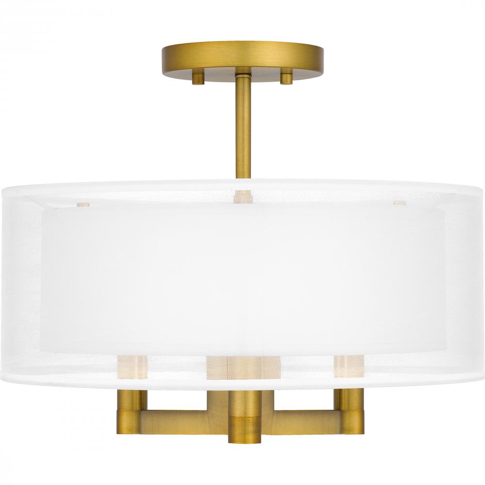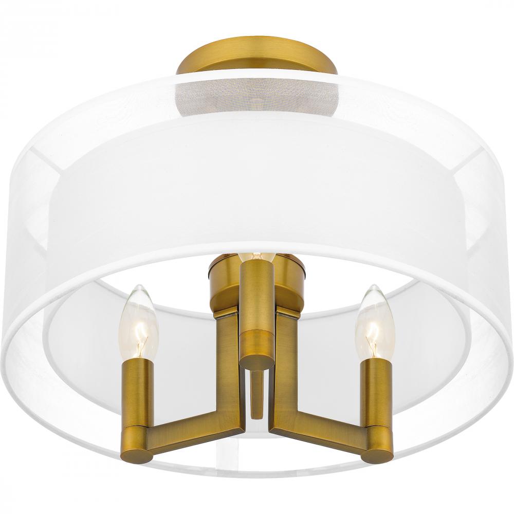 Bodnar 3-Light Aged Brass Semi-Flush Mount Light