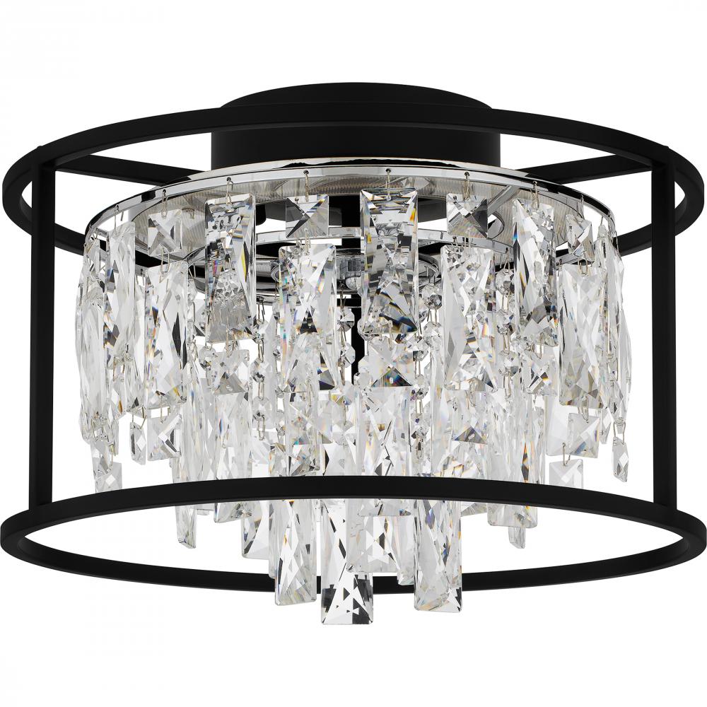 Matte black and crystal make a beautiful pairing in Brilliance, available as a semi-flush mount or island light. An integrated LED light source shines through clear crystal glass for a dazzling effect. Part of the popular Platinum by Quoizel collection, Br