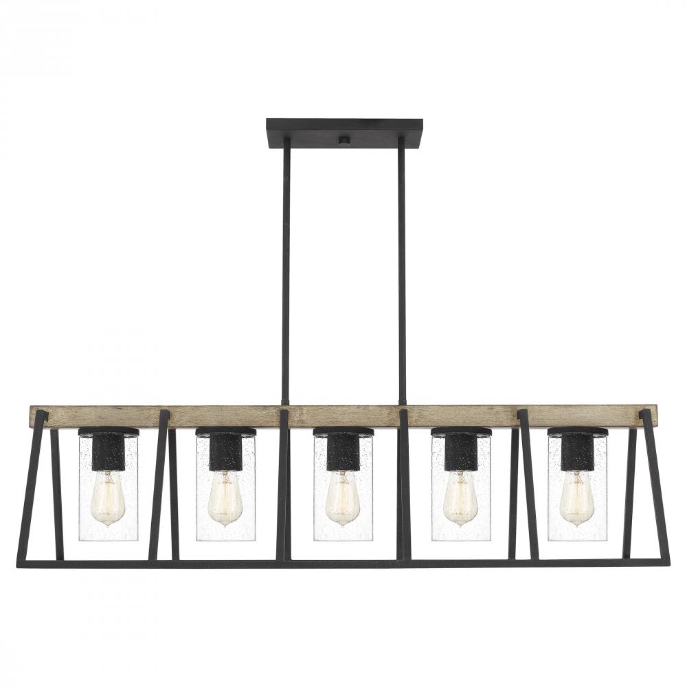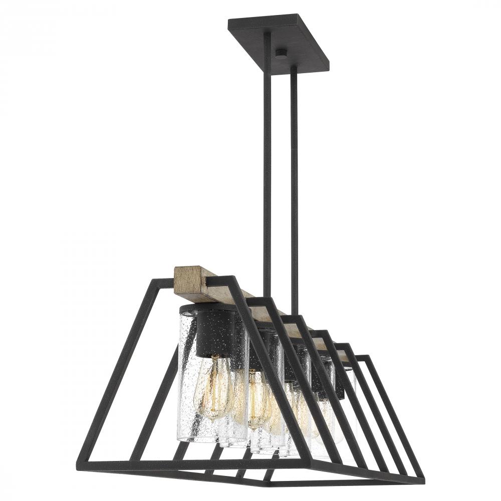 A contemporary update to the rustic chandelier, Brockton features seeded glass shades with Edison-style interior bulbs. With six shades suspended from a circular canopy, Brockton casts an abundant glow, even in large spaces. It’s also rated for use outdo