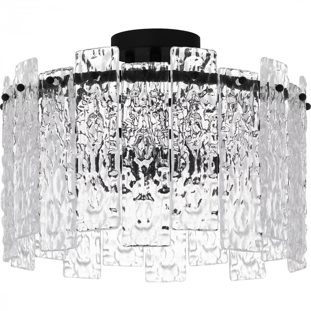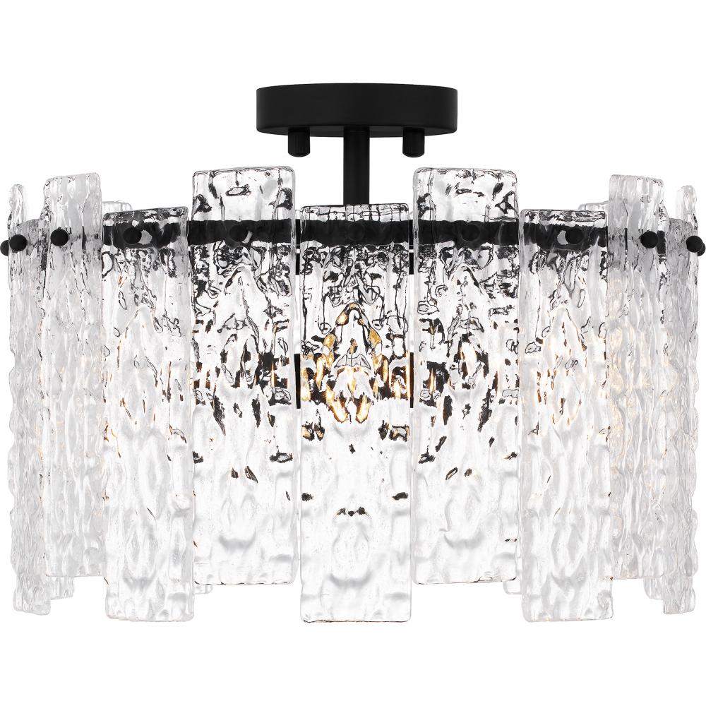 Clear textured glass creates a sense of movement in the Caspian collection. Available as a semi-flush mount or island light, this piece features a matte black finish and integrated LED technology for low maintenance and energy saving lighting. As part of t